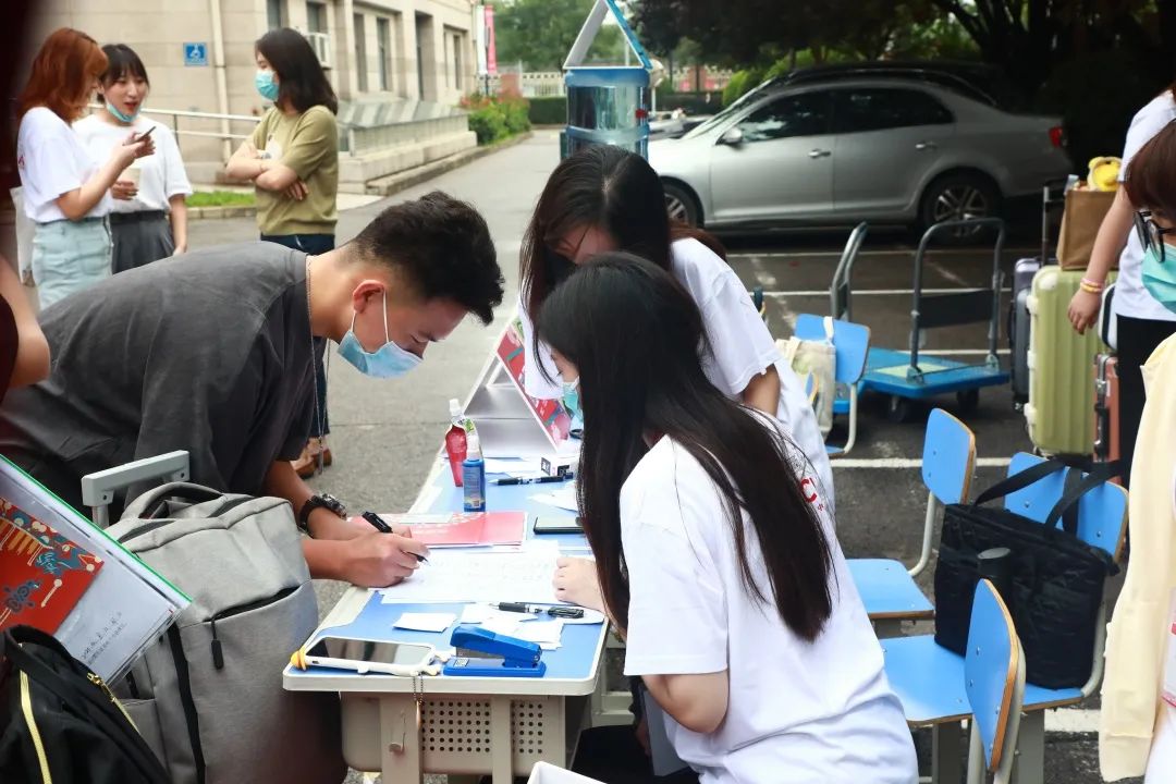学院高度重视疫情防控常态化下新生入学工作,认真落实“学校比社会面的防控标准要更高一些,节奏要更缓一些”的北京高校疫情防控基本原则,提前制定工作方案,盯紧每一个环节,抓实每一个细节。开学前,院领导带队对学生返校准备工作准备情况进行了检查,查找薄弱环节,细化各项工作流程,为新生顺利开学做好各项准备。报到现场,新生持身份证、录取通知书、48小时内核酸检测阴性结果证明,扫描健康宝和行程码入校,进行人脸识别核对查验后,在新生报到处间隔一米排队测温有序报到。学院也为新生准备了防疫“爱心包”及防疫手册,设行李寄存处、校内外饮水处及多个志愿者服务站,充分保障迎新工作顺利开展。