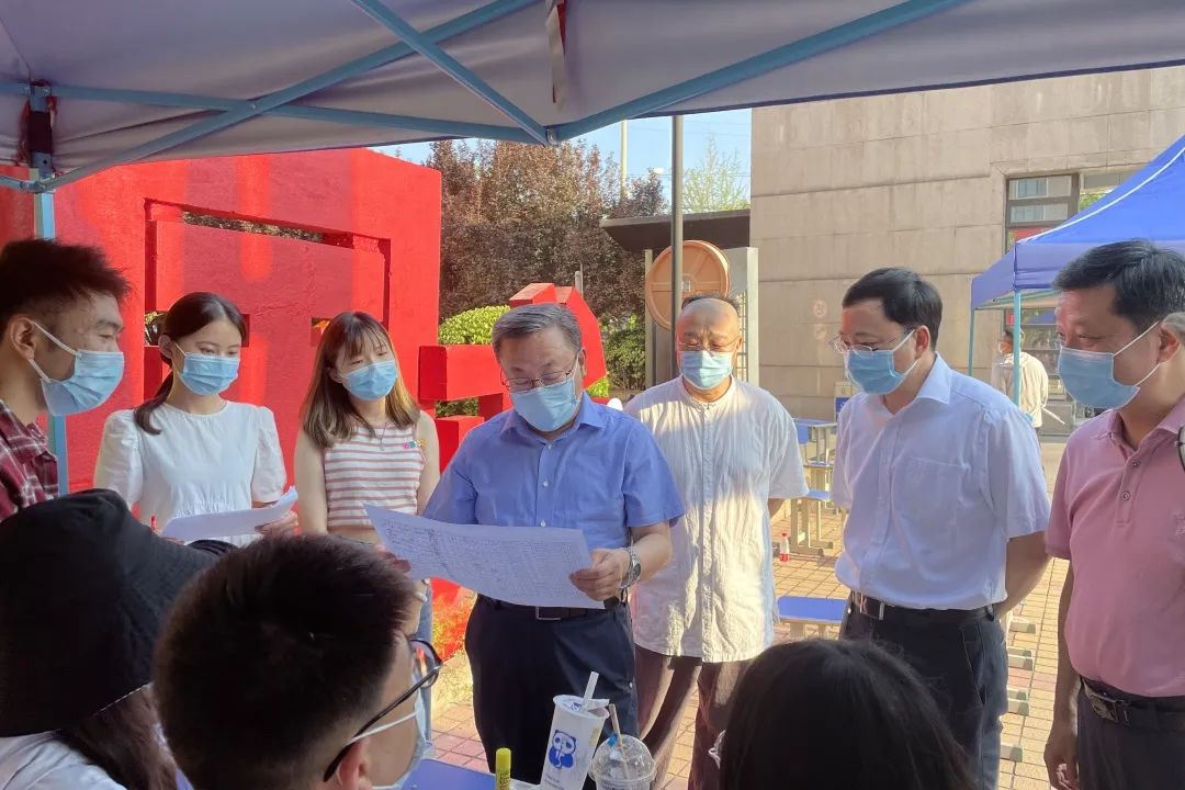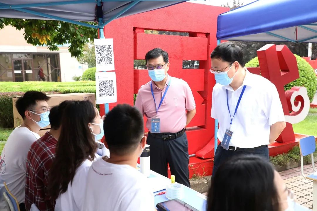 市教委主任刘宇辉同志来到我院视察新生报到与疫情防控工作开展情况。在党委书记李必友,院长尹晓东的陪同下,他与新生和工作人员亲切交谈,提醒大家要高度重视防疫工作,时刻紧绷疫情防控这根弦,扎实有序做好防疫各项工作。学院领导和相关职能部门负责人一同还查看了新生报到情况,对相关工作进行了仔细的检查和督导。