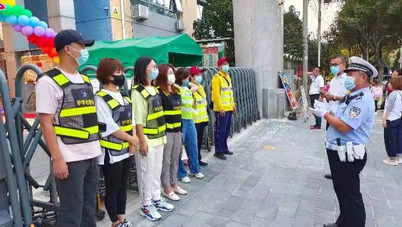 昌平区交通支队加强维护疏导、调整完善设施。在昌盛园小学门口,交警在学校门口设立专岗,疏导过往车辆,引导家长规范停车,引导和提示机动车驾驶员自觉遵守交通规则,礼让行人;指挥家长和学生有序通过人行横道,维护学校门口的交通秩序。家长志愿者在交警的组织下组成护学志愿者小队,经现场培训后,协助交警共同维护交通秩序。