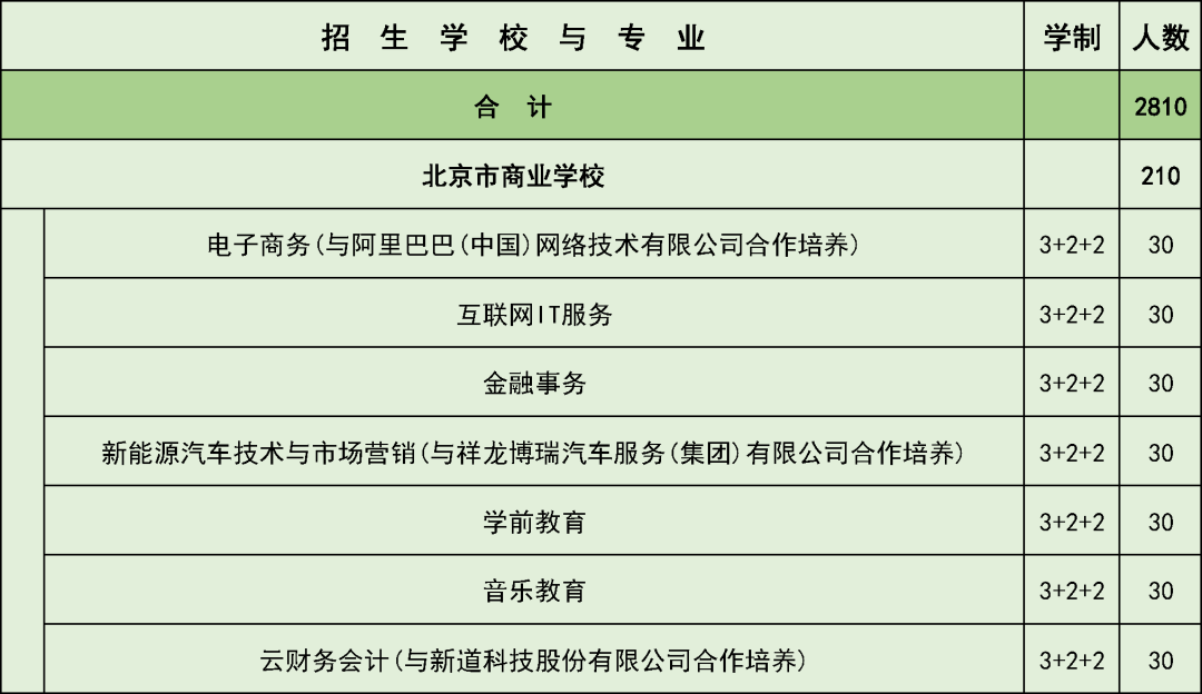 2021年普通中等专业学校、五年制高职试点学校和高端技术技能人才贯通培养学校在京招生规模发布。