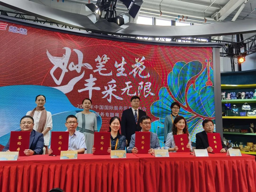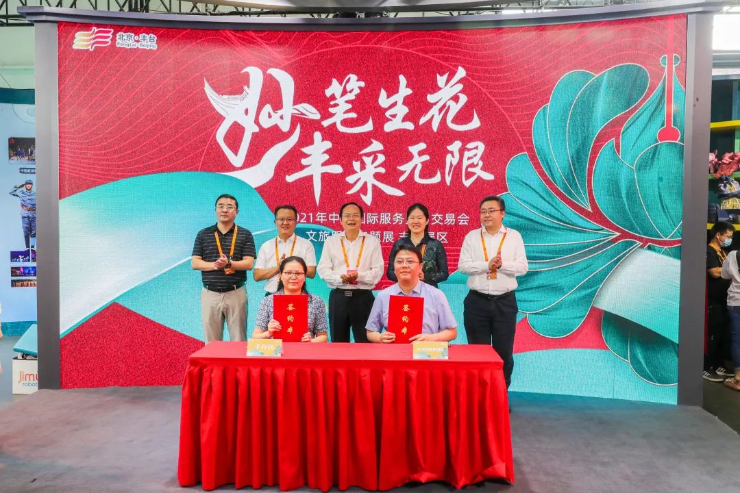 2021年服贸会在北京盛大开幕。9月3日上午,丰台展区开展首日迎来开门红,中国戏曲学院、中央芭蕾舞团、中国歌剧舞剧院、北京服装学院、北京演艺集团、北京市海外文化交流中心等6家重点文化单位一齐聚焦丰台,与丰台区签署战略合作协议,为丰台区的文化建设和经济发展构建新格局,增加新动能,开启新征程。丰台区委书记徐贱云,区委副书记、区长初军威,中央芭蕾舞团团长冯英、中国戏曲学院院长尹晓东、北京服装学院党委书记周志军、北京演艺集团党委书记赵佳琛、中国歌剧舞剧院副院长许宁、丰台区副区长张婕出席签约仪式。