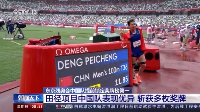 在昨天的田径赛场上,首次参加残奥会的邓培程在男子100米T36级比赛中以11秒85夺冠并刷新残奥会纪录。在女子200米T11级决赛中,世界纪录保持者刘翠青以24秒94夺冠。孙鹏祥在男子标枪F41级比赛中以47米13夺冠并刷新了自己保持的世界纪录。米娜和李英粒在女子铁饼F38级比赛中包揽金银牌。米娜以38米50的成绩刷新了世界纪录。