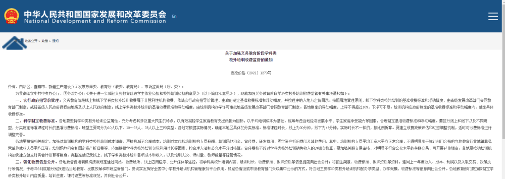 为贯彻落实中共中央办公厅、国务院办公厅《关于进一步减轻义务教育阶段学生作业负担和校外培训负担的意见》(以下简称《意见》),三部门就加强义务教育阶段学科类校外培训收费监管有关事项通知,全文如下: