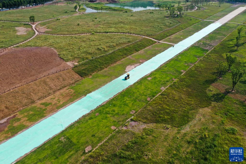 这是8月6日拍摄的重庆广阳岛生态修复二期项目施工作业现场(无人机照片)。新华社记者 王全超 摄
