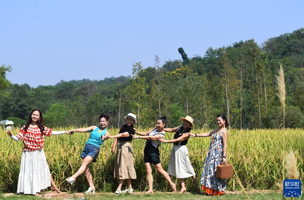 游客在重庆广阳岛游览、留影(2020年8月30日)。新华社记者 王全超 摄