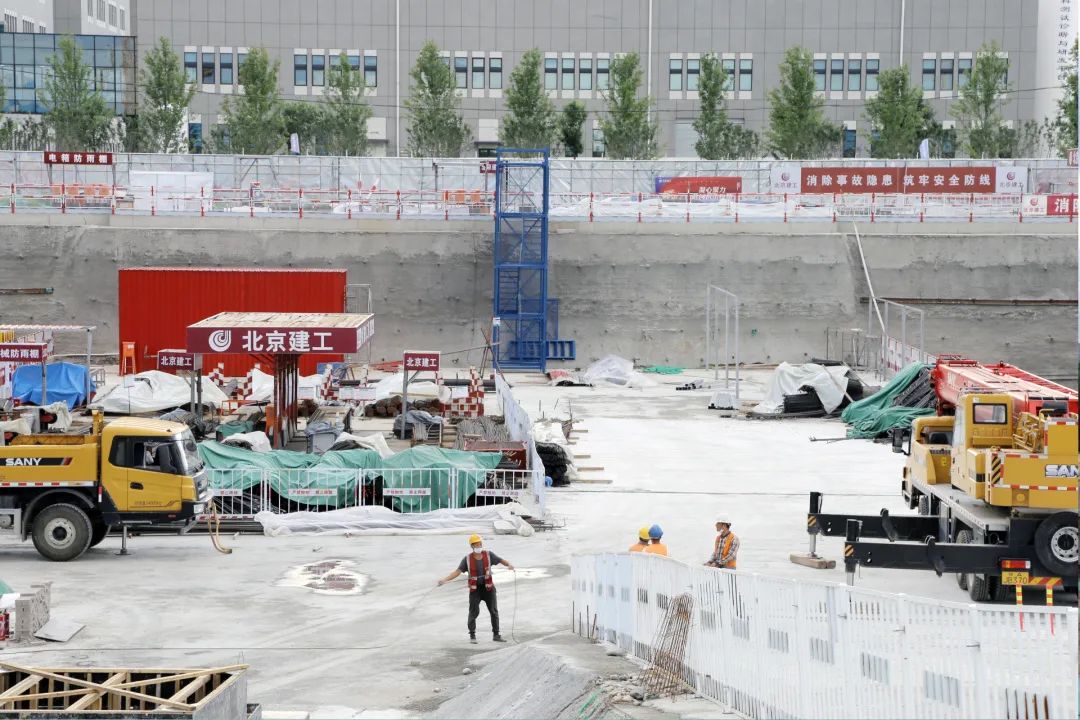 怀柔科学城公司以“北京市绿色文明安全样板工地”为标准,确保施工质量、进度、安全。目前,怀柔科学城城市客厅A地块、B地块项目正有序推进,正在进行土石方开挖和运输、基础垫层浇筑及铺设防水等工作。