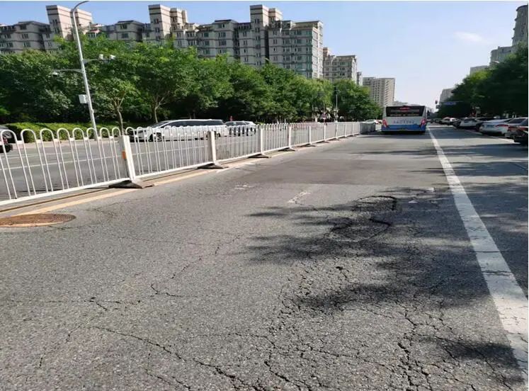 2、分别由两组施工人员以老营房路为分界由南向北顺行施工,施工按东西幅分别施工,两侧非机动车道及停车位宽度4-6.5米,满足车辆行驶,因此采用引导机动车占用非机动车道及停车位行驶,非机动车引导至步道行驶,首先对东半幅施工,西半幅正常行驶。待东半幅竣工后,再进行西半幅施工。