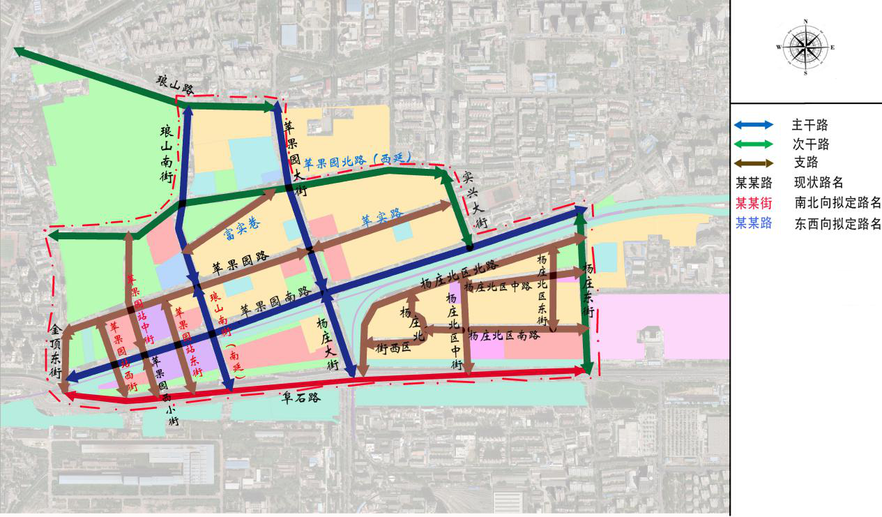 拟命名区域位于苹果园交通枢纽地区,规划范围为:金顶东街以东、琅山路以南、杨庄东街以西、阜成路以北。规划用地面积约1.6平方公里。
