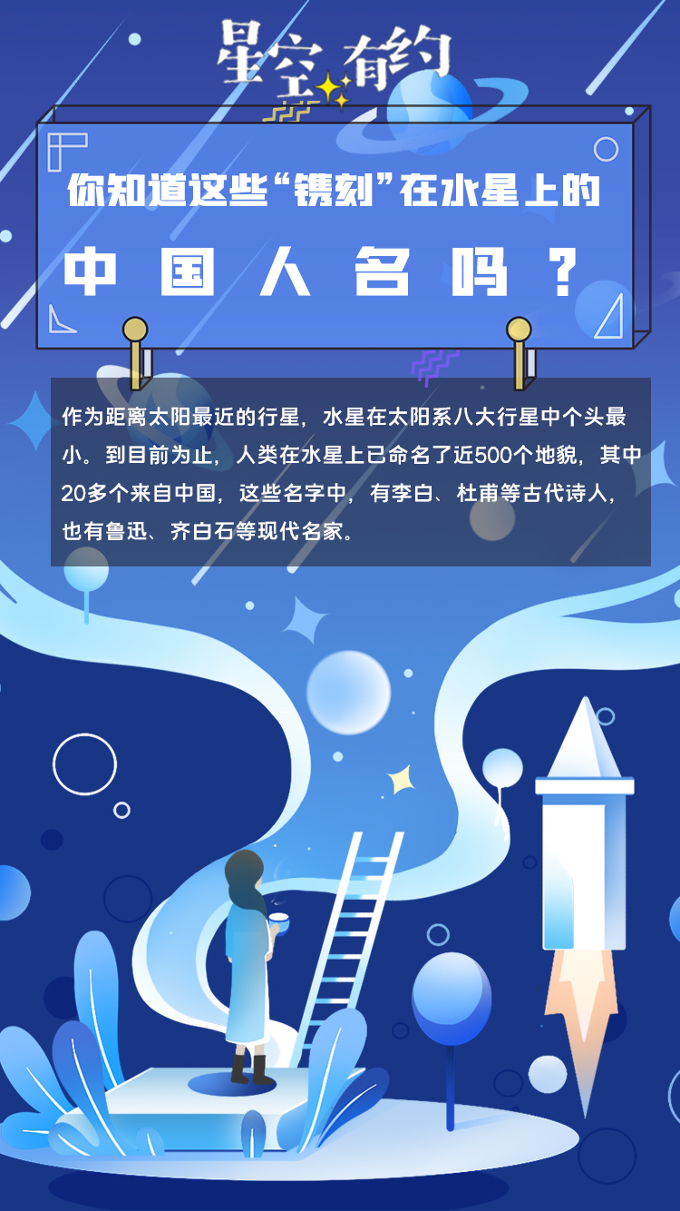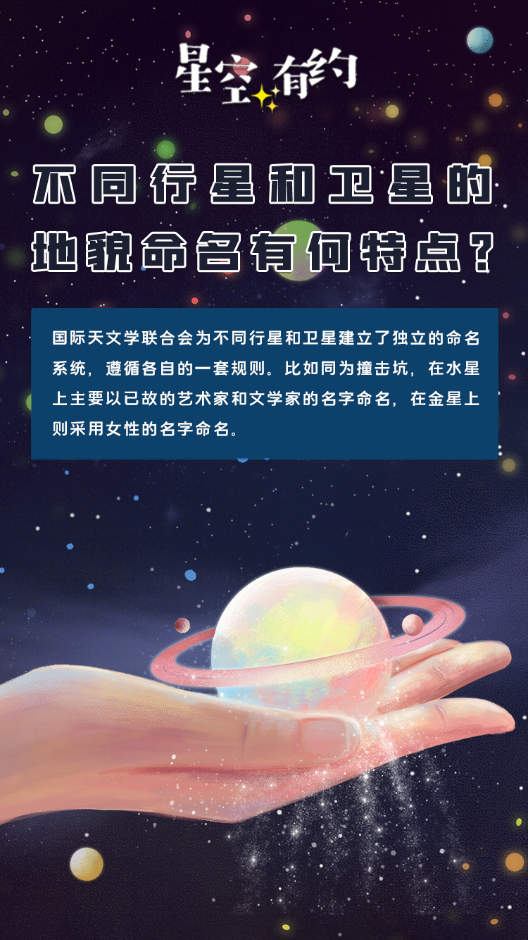 为了保证充足的名称来源,国际天文学联合会为不同行星和卫星建立了独立的命名系统。比如同为撞击坑,在水星上主要以已故的艺术家和文学家的名字命名。王科超说,迄今为止,以中国人名命名的水星撞击坑有21个,这些名字中,有李白、杜甫等古代名人,也有鲁迅、齐白石等现代名家。