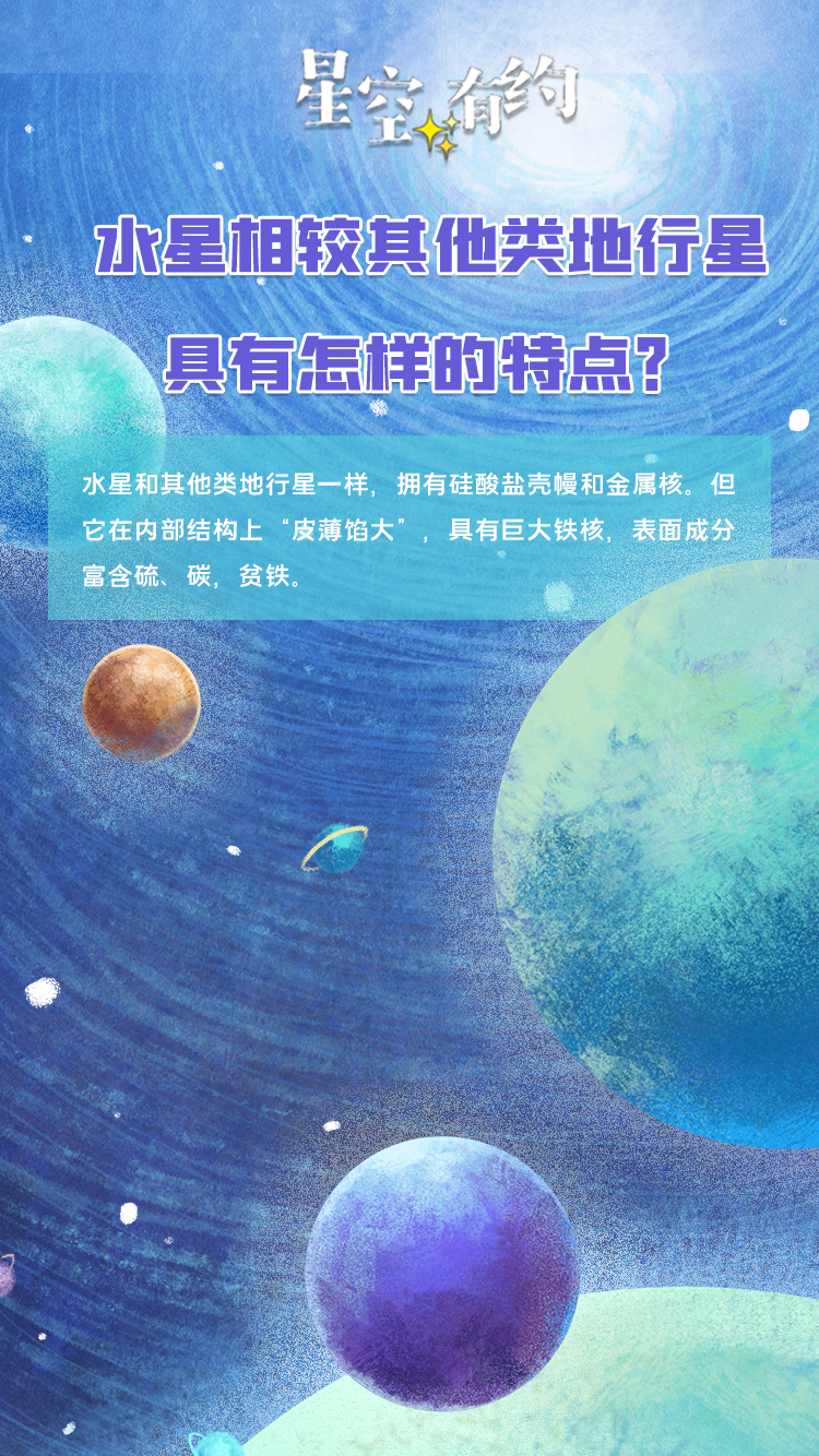 据中科院紫金山天文台科普主管王科超介绍,水星和其他类地行星一样,拥有硅酸盐壳幔和金属核。但它在内部结构上“皮薄馅大”,具有巨大铁核,表面成分富含硫、碳,贫铁。探测水星有助于帮助科学家认识太阳系的起源、行星的形成演化以及星球宜居性等问题。为了便于科研和制图,科学家还会为各种特征地貌取上朗朗上口的名字。