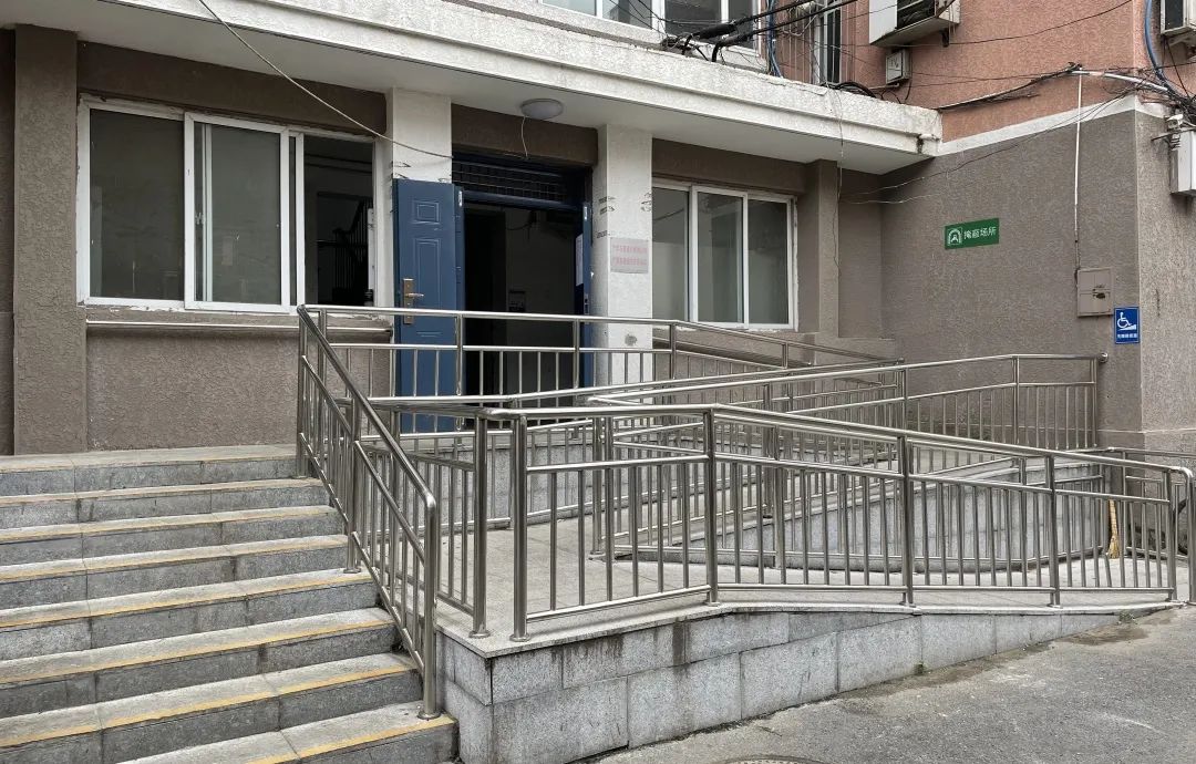 在北太平庄街道的蓟门里社区,小编看到了一条不太常见的双向无障碍坡道,这个坡道是街道联合社区根据居民的出行需求,同时根据两楼之间的原有空间以及无障碍通道的设计规范,打造的一条爱心便民道。