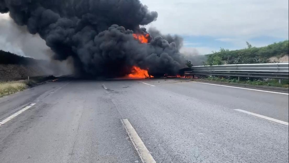 9月14日12时36分,京沈高速辽宁锦州段沈阳方向452公里处,一辆罐车和厢式货车相撞起火。经现场处置,火势已被扑灭,无人员伤亡。