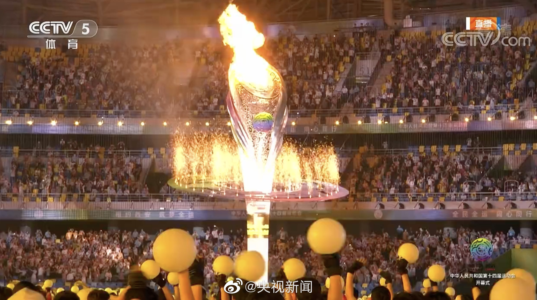 9月15日晚8时,第十四届全运会开幕式正式在西安奥体中心体育场举行。
