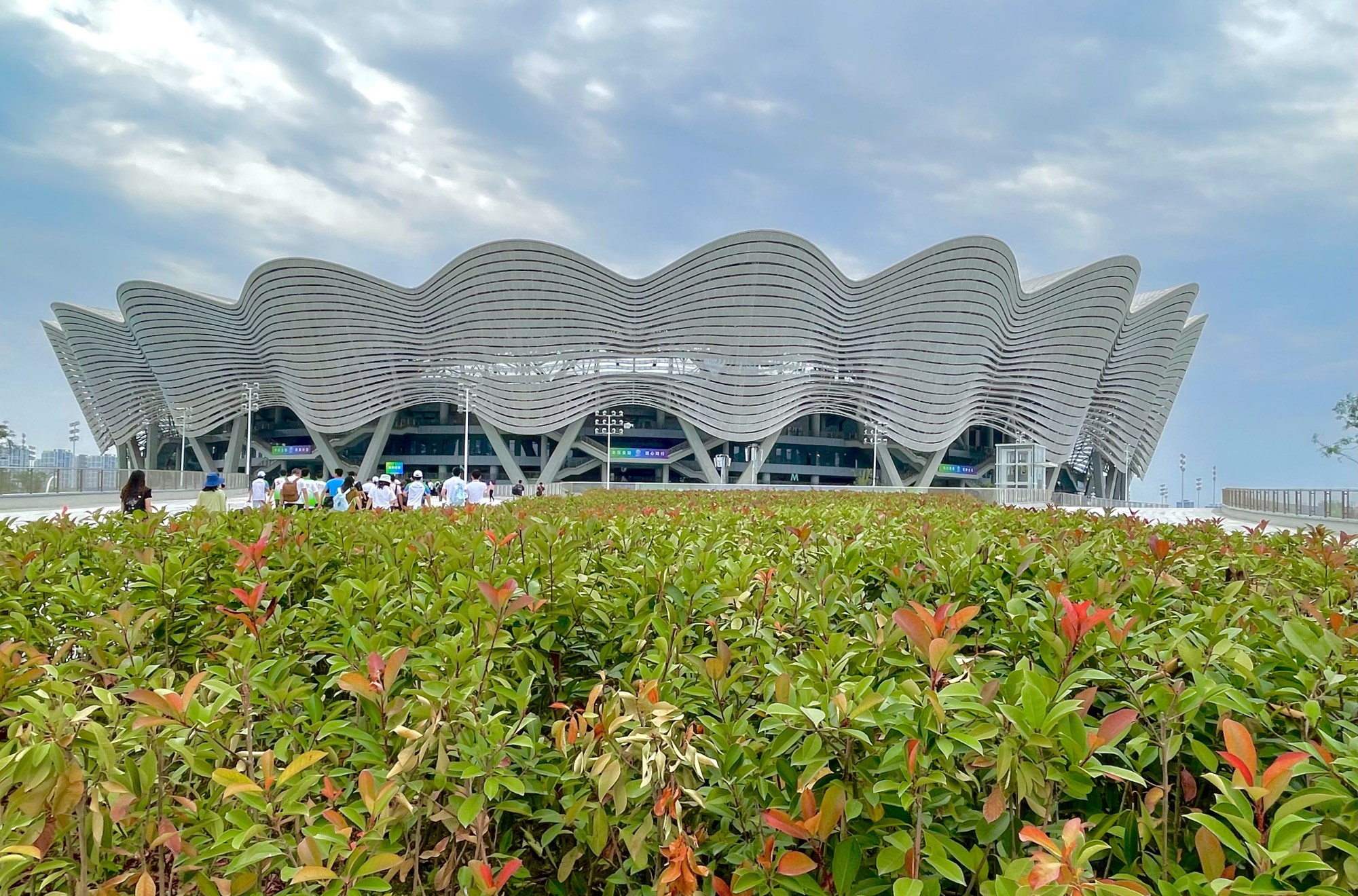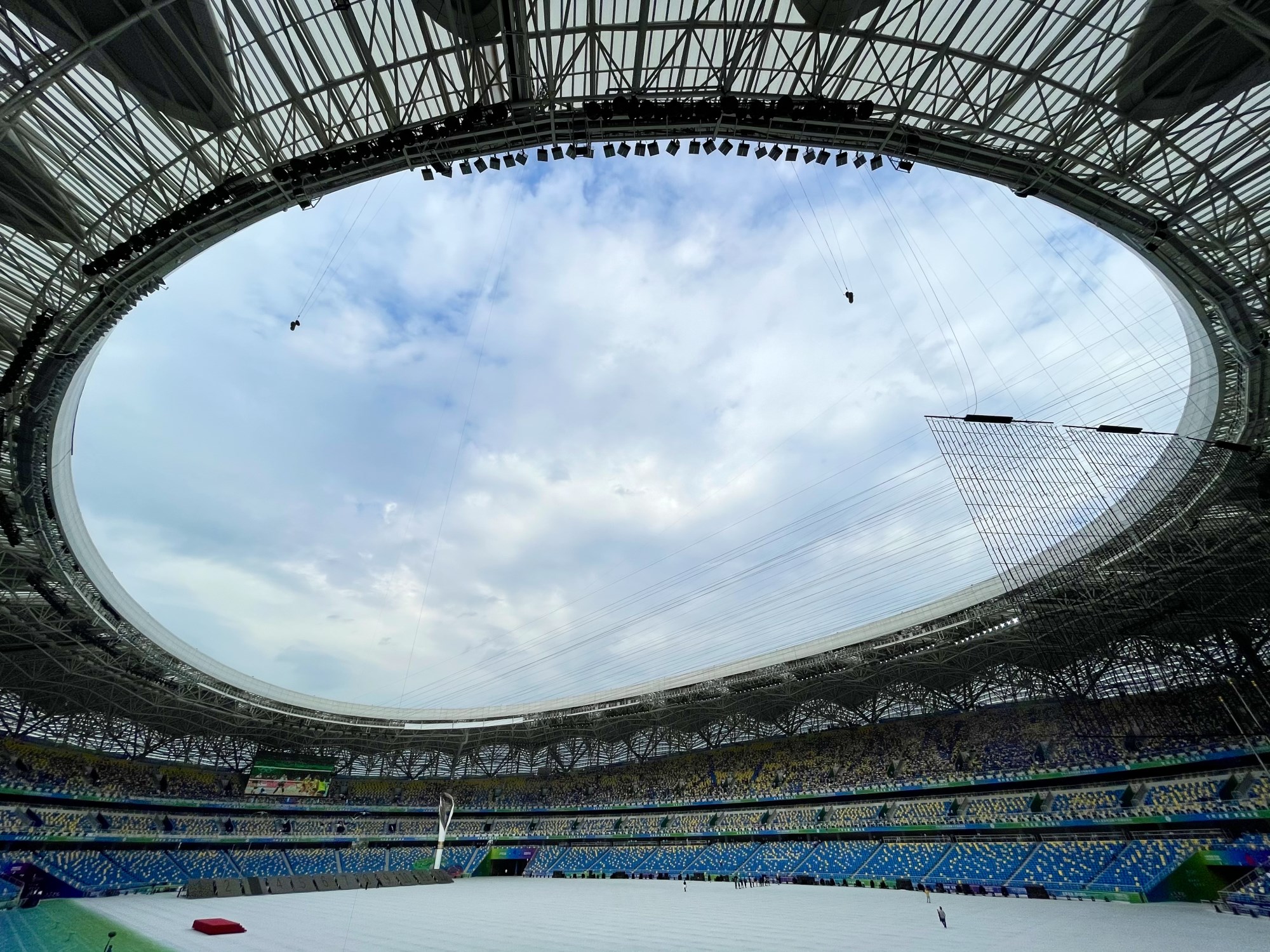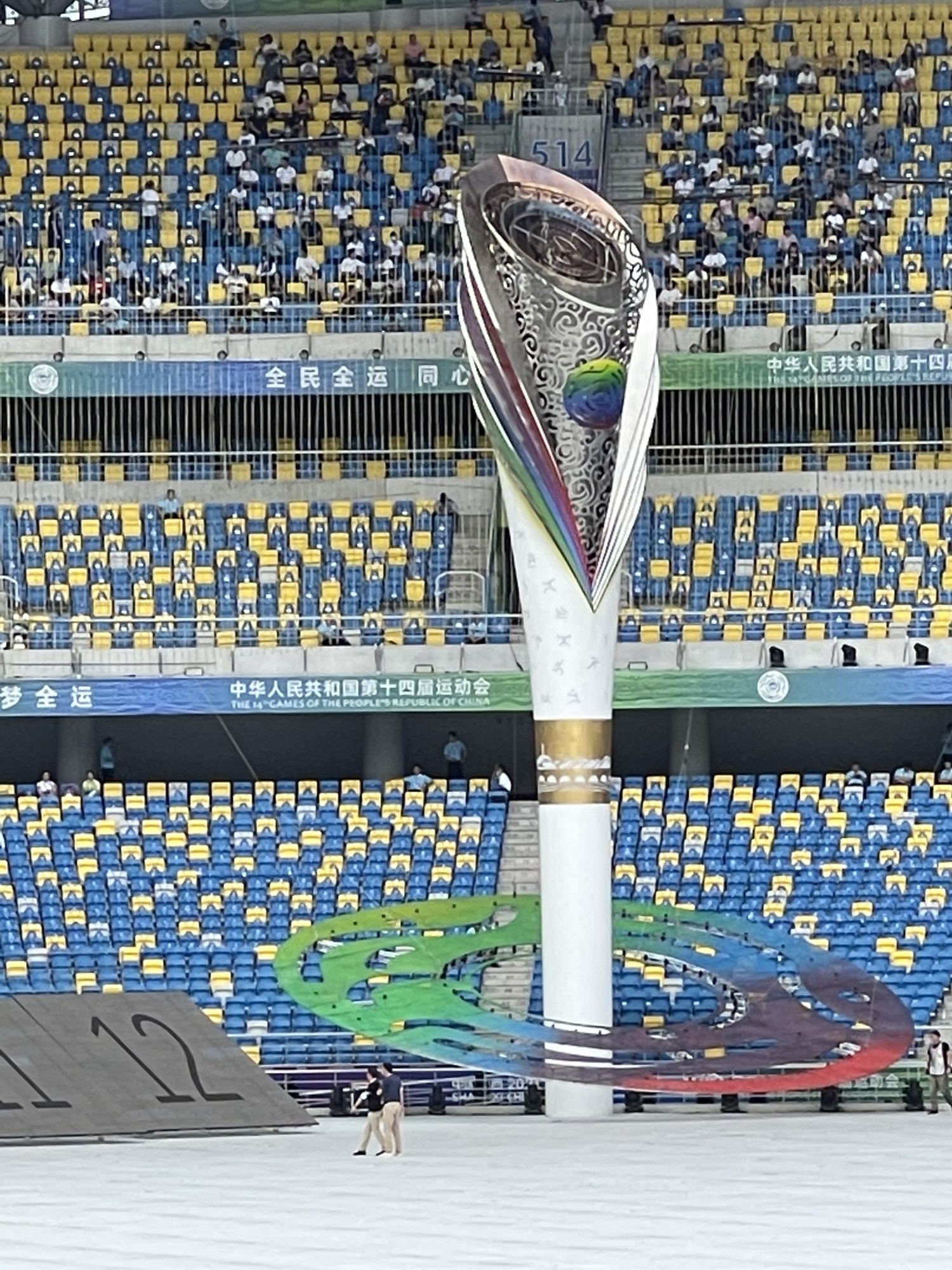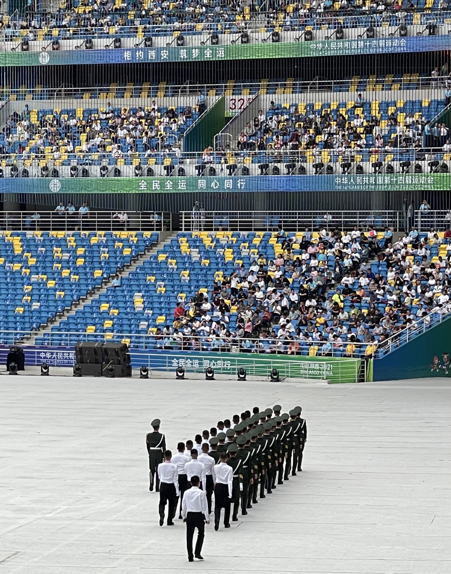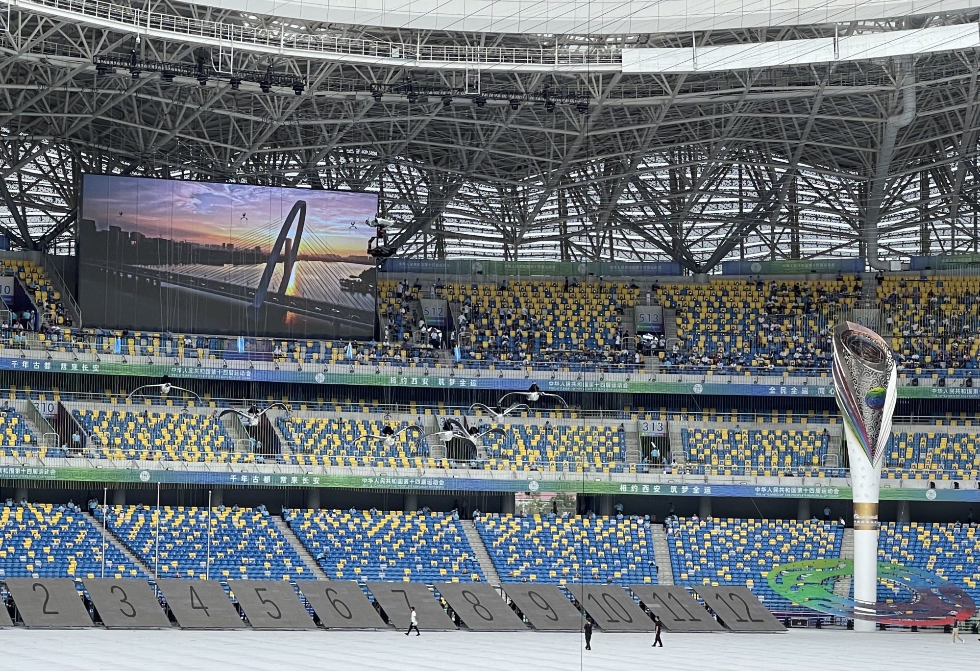 开幕式即将举行,先带大家看一下西安奥体中心的场外、场内画面。 曹晖 摄