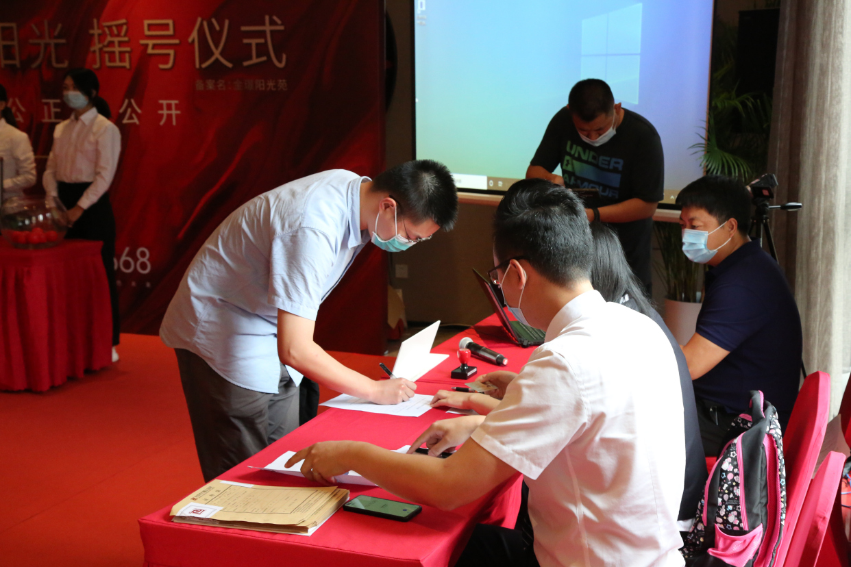 9月15日,丰台区金璟阳光苑共有产权住房摇号仪式在首钢金璟阳光接待中心举行。