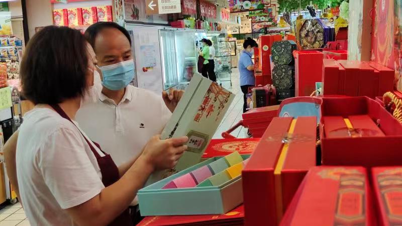 在新世纪商城,记者看到商家正在积极备货。在商城醒目的位置,各式月饼纷纷摆上展架,除了精美的礼盒装月饼外,不同口味的散装月饼也吸引了市民前来挑选。“我比较喜欢吃五仁、豆沙的,今天过来打算储备一些。另外,也想给老家的父母邮寄一点,这样也算和他们一起过节了。”市民王莎莎说。