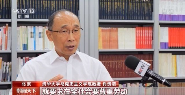 清华大学马克思主义学院教授 肖贵清:在中国共产党领导革命建设100年的这个历程当中,尊重劳动,弘扬劳模精神一直是我们党的一个优良的传统。新中国成立以后,工人阶级成为国家的主人,劳动创造未来,那么新中国的一切,包括中国特色社会主义事业的开创,都要靠劳动来完成。所以中国共产党从我们的党的性质,从我们代表的新中国的未来(出发),就要求在全社会要尊重劳动,弘扬劳模精神。