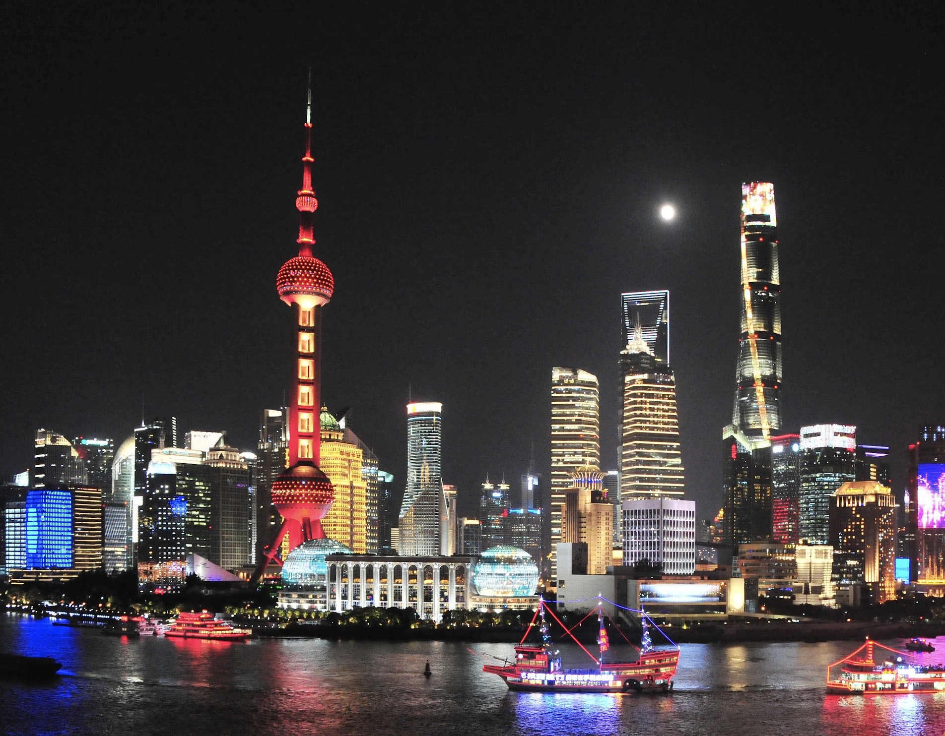 对,这里就是上海。背靠外滩,面朝黄浦江,对望“陆家嘴四件套”(金茂大厦、环球金融中心、上海中心大厦和东方明珠),现代而充满活力的城市天际线尽收眼底。待朤月初上,我们在这里静静守望魔都的钢铁森林和灯红酒绿。