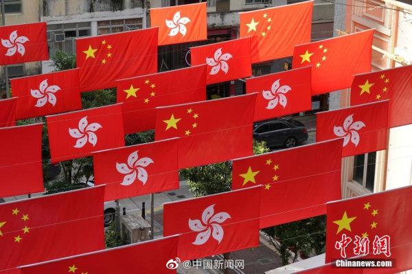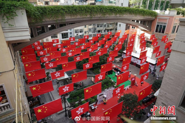 9月22日,100多面五星红旗和香港特区区旗高悬香港利东街中庭上空。这是利东街首次出现由国旗和区旗组成的“旗海”。国庆节将至,香港街头的国庆气氛越来越浓。