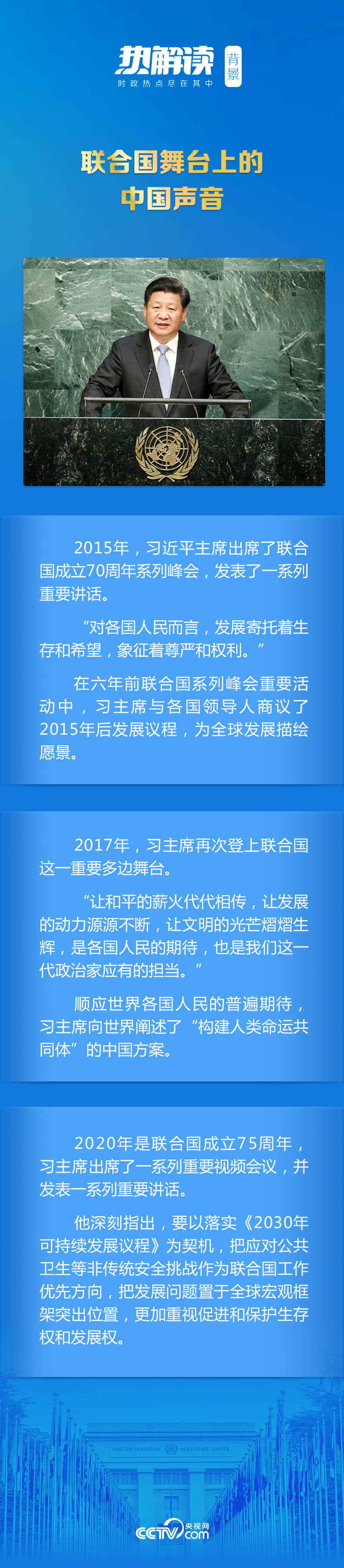 2015年以来,习主席多次在联合国这一重要多边舞台上发出中国声音,提出中国方案,阐明中国立场。