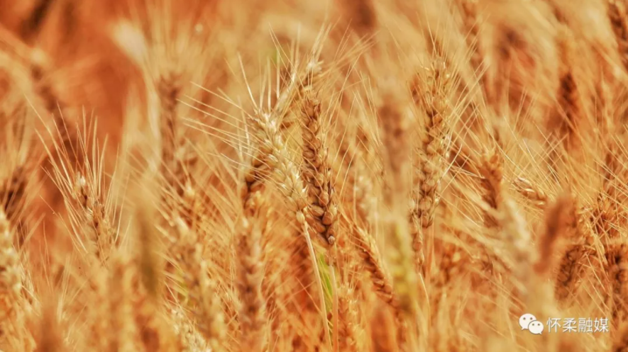 微风吹过,金黄的麦浪层层波起。在金色的阳光下,饱满的麦穗格外耀眼。