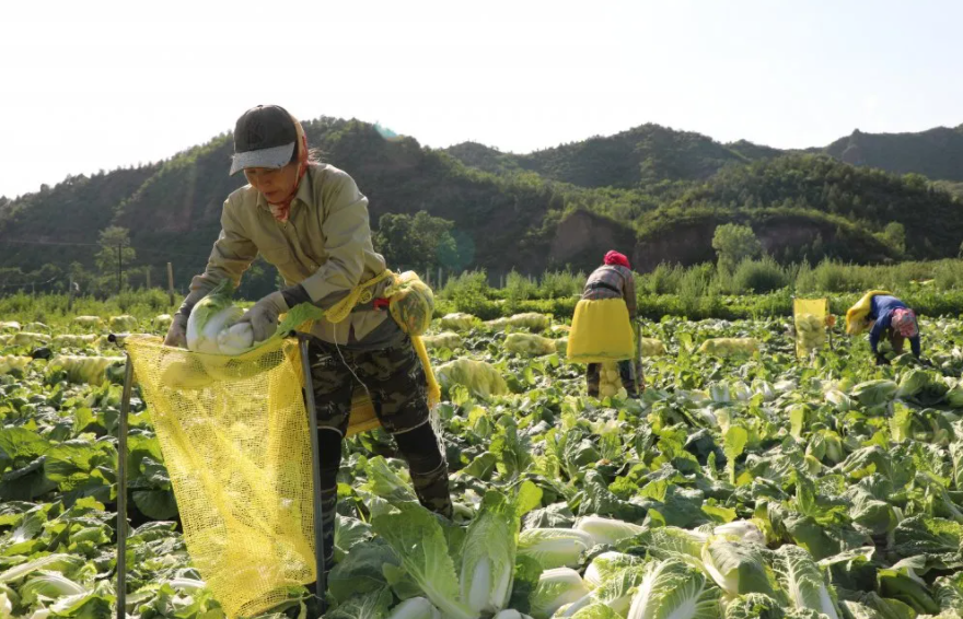 汤河口镇西帽湾村,200余亩蔬菜大田喜获丰收,菜农正在忙碌的采收娃娃菜及大白菜。砍下地上的白菜,剥掉外层泛黄的菜叶,一垄垄白菜便躺在了田埂上,菜农将这些白菜抱上车,码放整齐后,随着司机师傅的一声鸣笛汽车开出菜田,驶向城区的农贸市场。