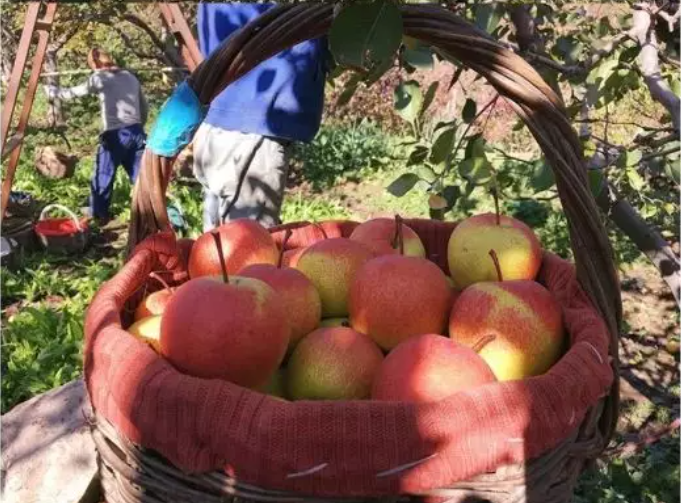 一颗颗圆润的红肖梨,沐浴了河防口村春、夏、秋三季的阳光,吸足了山村的甘露。经过120天的窖藏沉淀,用它最好的姿态呈现在大家面前。