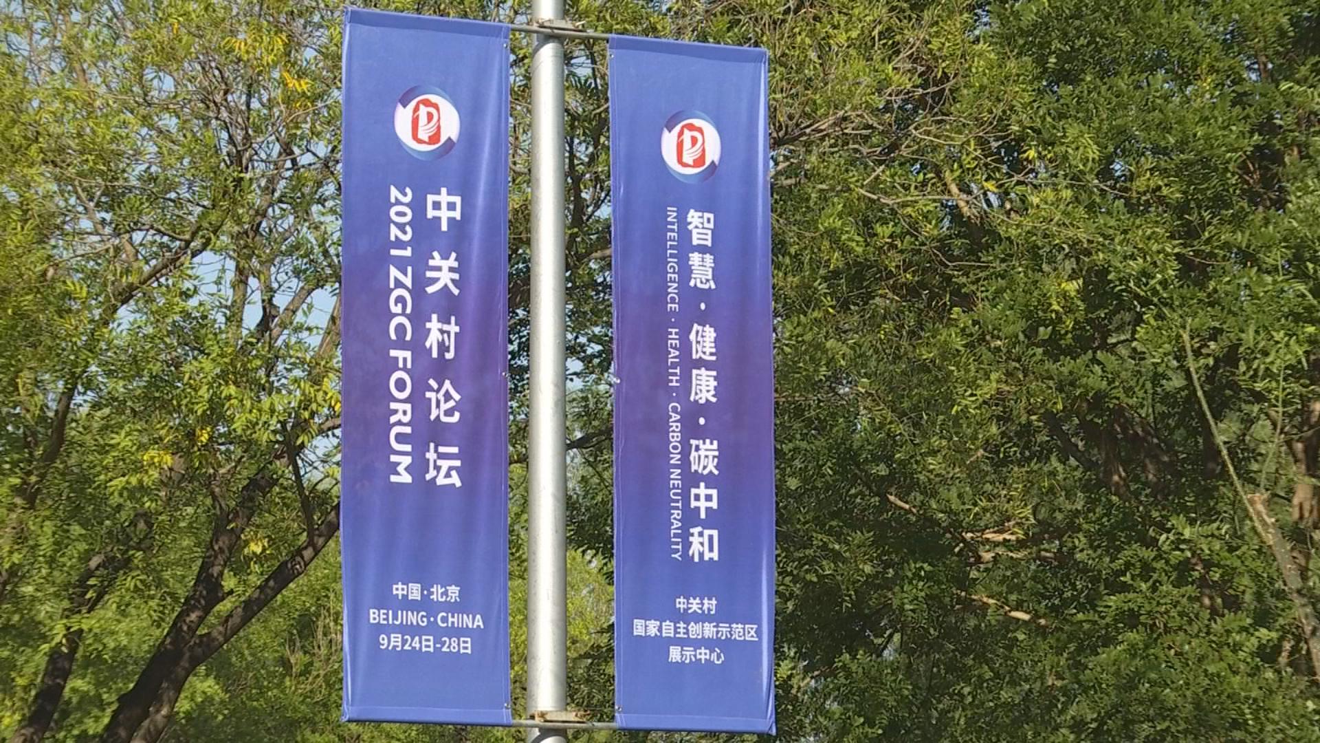 2021中关村论坛今晚开幕,为充分展示海淀的科技创新文化底蕴和现代城市魅力,我区积极谋划,采用道旗、花卉、展板等布置论坛周边重点路段,充分营造出热烈、昂扬的论坛氛围。精心布置后的海淀公园路,成为一道赏心悦目的风景线,蓝色的道旗与蓝天交相辉映,充分展现了科技海淀的精神风貌。 (记者 吕天翔 文/摄)