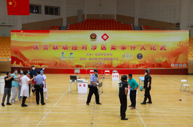 此次“医警联动应对涉医案事件大比武”由北京市公安局主办、北京市卫生健康委员会协办。由医院警务室民警、医护人员、保卫干部、保安队员和安检人员组成的全市32支医警联动处置团队,经过了初赛、预赛的比拼,优中选优,其中8支团队脱颖而出进入决赛。