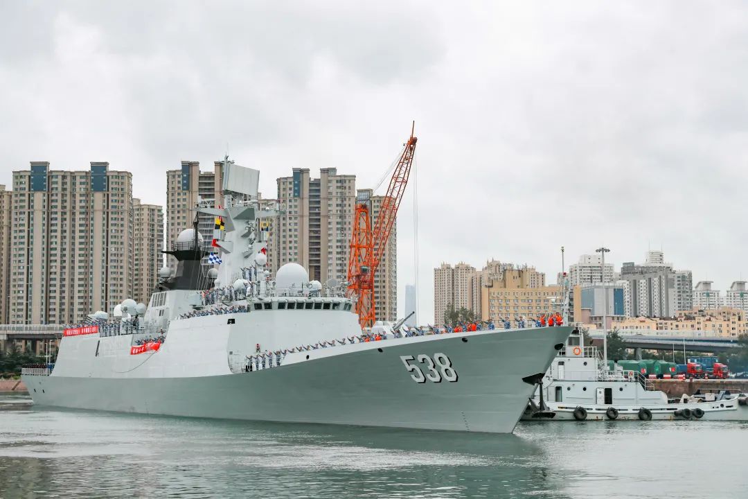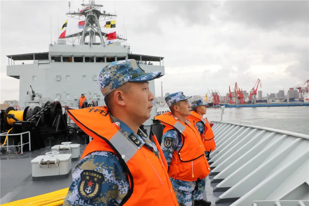 从山东青岛某军港解缆起航