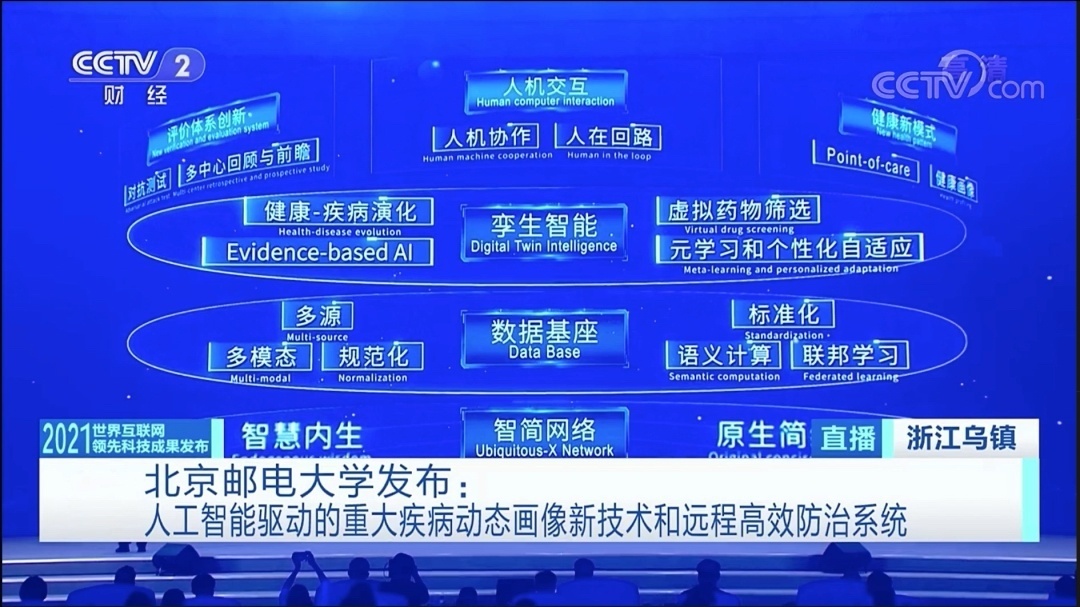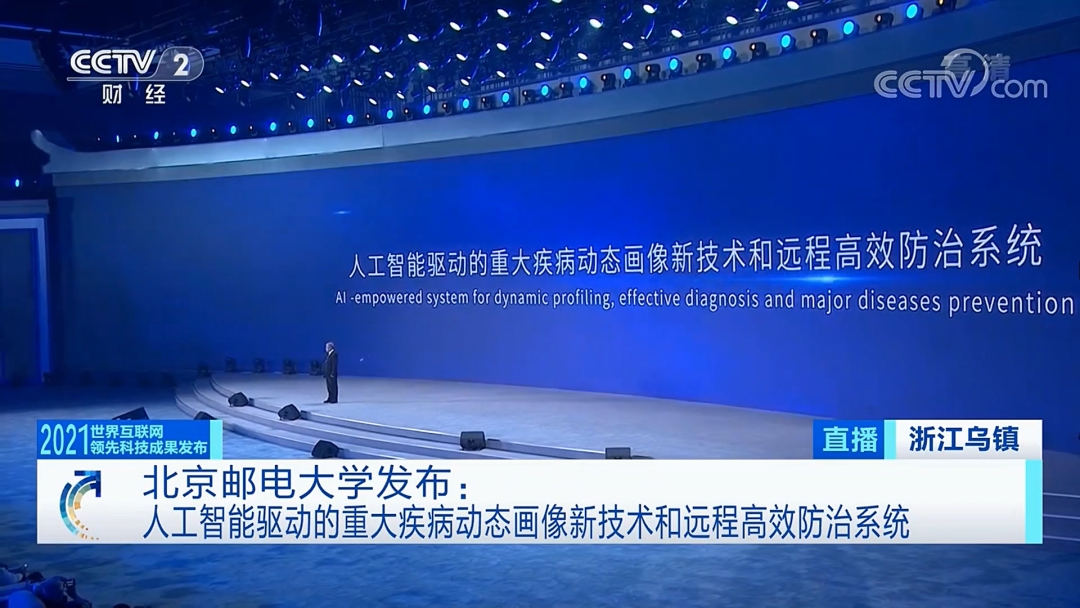 北京邮电大学网络与交换技术国家重点实验室,张平院士团队的研究成果——《人工智能驱动的重大疾病动态画像新技术和远程高效防治系统》(AI-empowered System for Dynamic Profiling, Efficient Diagnosis and Major Diseases Prevention),入选“2021世界互联网领先科技成果”,张平院士进行了现场发布。