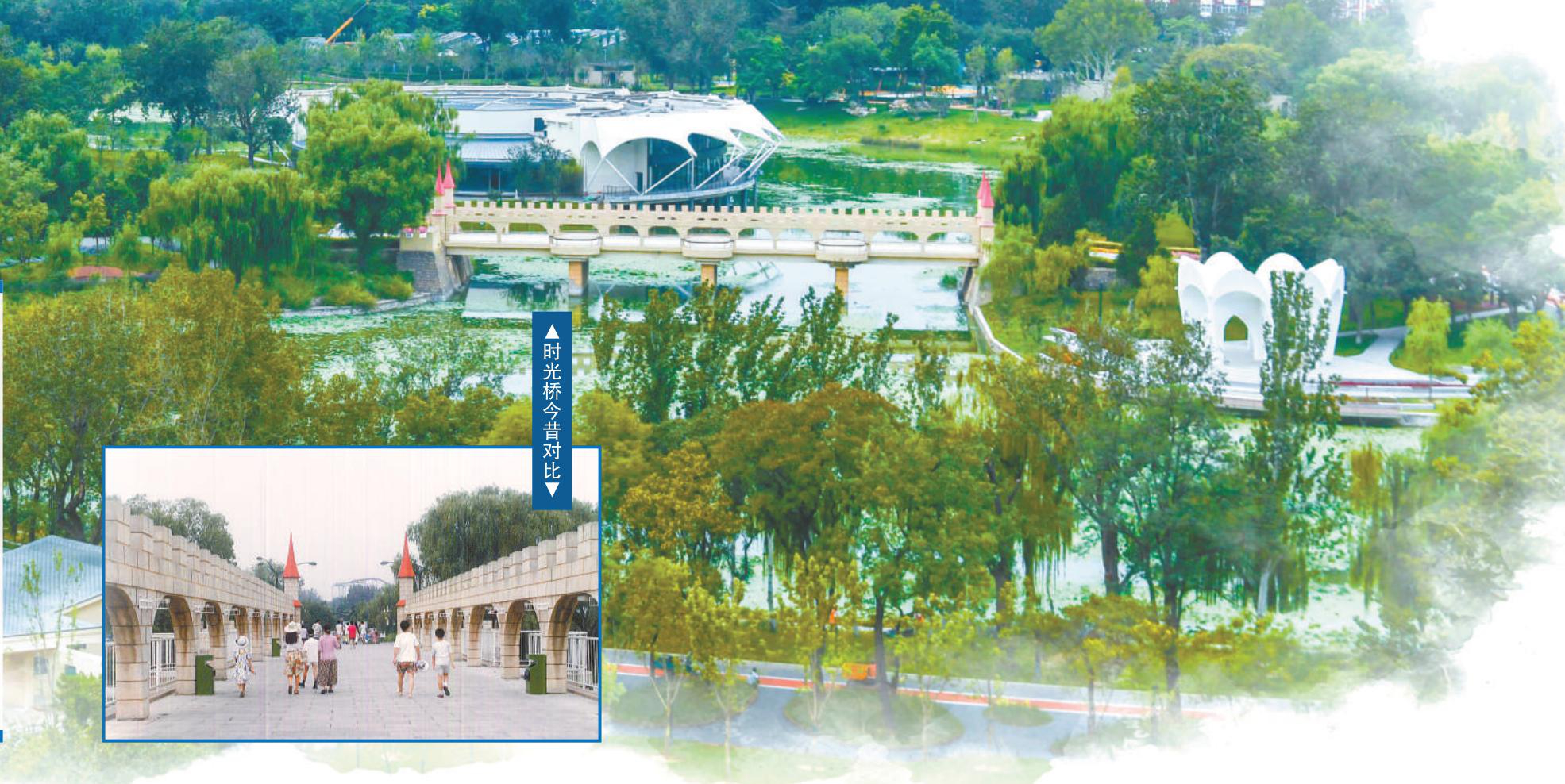 毗邻北门、东南门、东门三个大门,长长的湖岸线环抱着开阔水面,人们既可在环湖步道、童趣天地体味城市悦动,也可以登上时光桥,遥望曾经的摩天轮、神奇古堡改造而成的滨水活动馆、小码头建筑改造而成的百合亭,感受古韵新意。