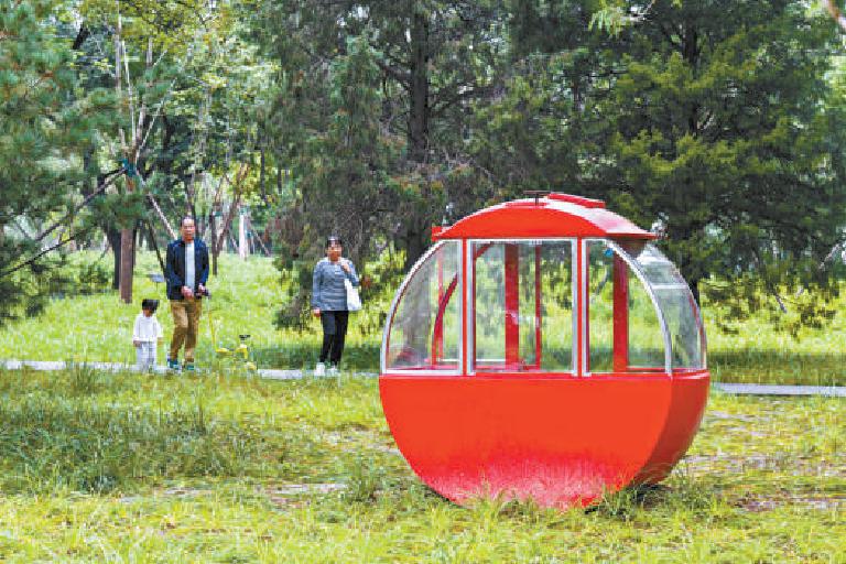 无法再利用的摩天轮轿厢点缀在林间草地,成为谐趣小景。