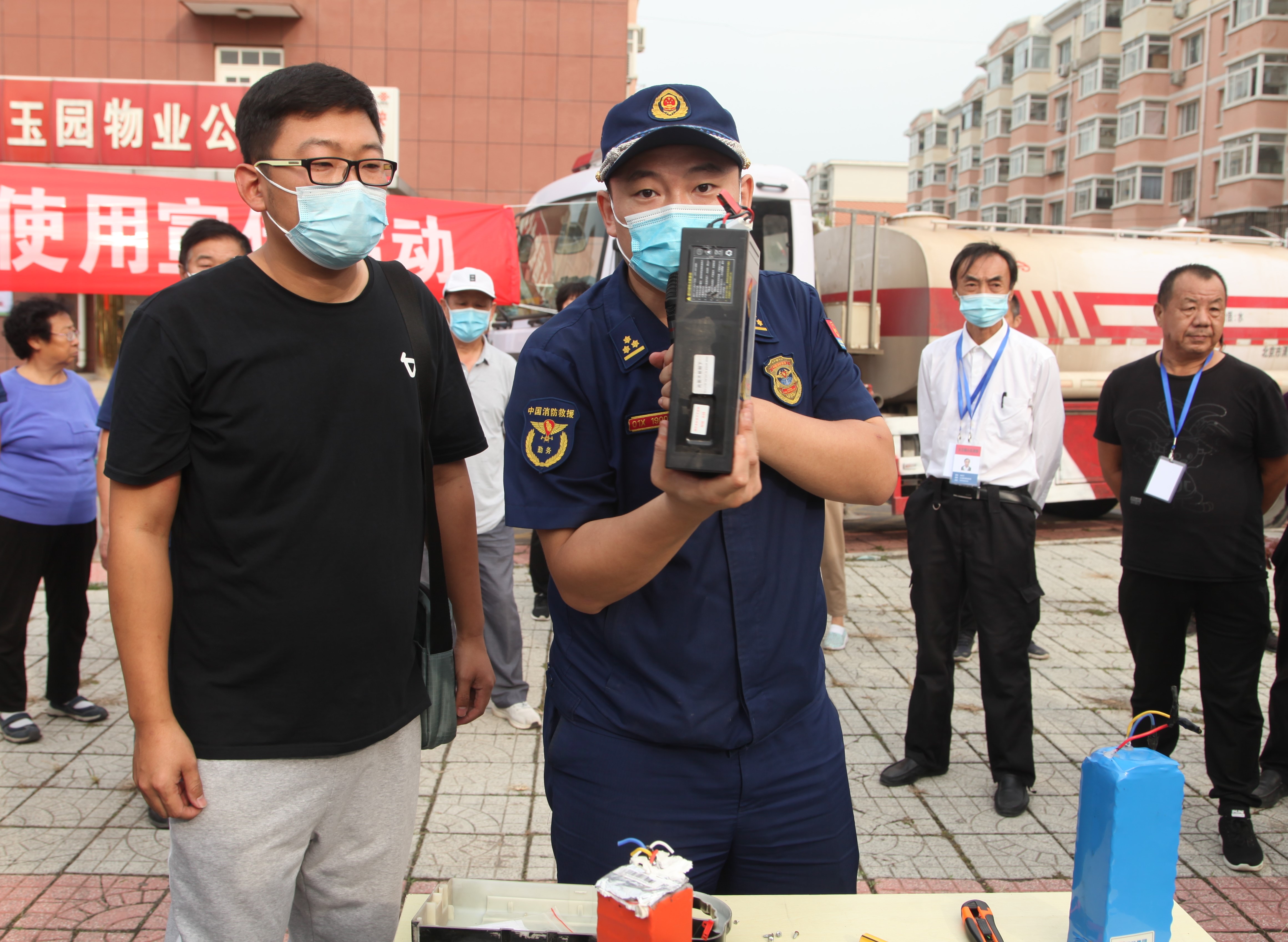 “哎,这‘三无’锂电池外面和里面就套个塑料皮儿密封啊,这能起啥作用啊?”现场参与宣传活动的群众围着一块伪劣锂电池议论纷纷,“这电池里面都锈了?会不会爆炸啊?”