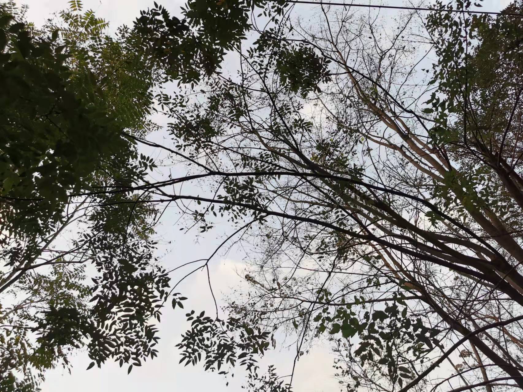 住宅楼前有10余棵白蜡树,已合抱粗,树高超过了4层楼,但抬头看去,树冠处的枝叶几乎被啃光,仅留下一片片叶脉。有的被啃噬得更厉害,整个树冠的树叶全部消失殆尽了。