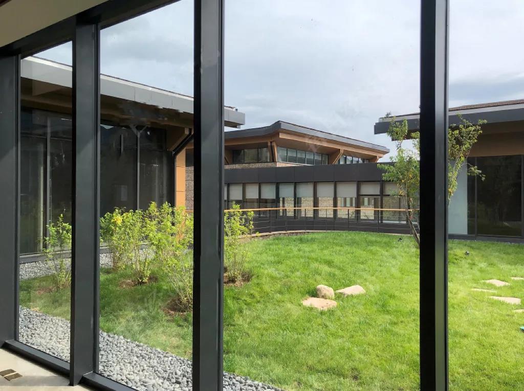 远远望去,代表中国传统建筑特点的坡型“大屋顶”和高挑的出檐掩映在山林之间,从高空中俯瞰,冬奥村的平面又与北京传统的四合院民居相契合。