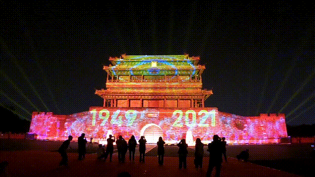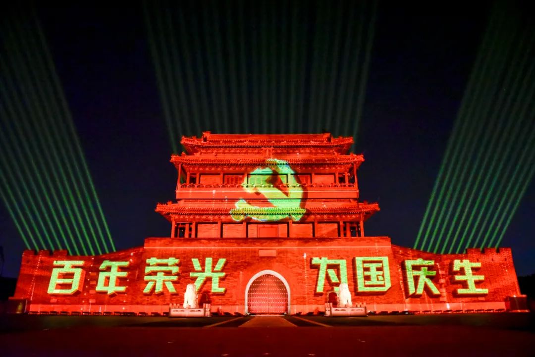 在祖国72周年华诞到来之际,在北京中轴线南起点永定门城楼,东城区推出光影秀活动展现建党百年的恢弘历史进程,重温历史、不忘初心,回顾峥嵘岁月、展望辉煌未来,以“科技场景”打造的“文化+科技”跨界视觉盛宴为祖国母亲庆生。本次活动未采用传统高能耗的金卤光源,所有灯具设备均为Led节能光源,所有投影设备光源均为节能激光光源,有效的做到节能环保。声、光、影的交错,凝聚起始于足下、驰于奋斗的荣耀之路,绽放出“不忘初心、牢记使命、永远奋斗”的信仰之光。