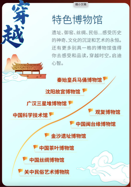 除了传统文化艺术外,越来越多人选择博物馆、文创艺术区及影视基地等作为假期出游目的地。这一定程度上反映出,随着物质生活水平不断提升,国人旅游更越来越注重文化品味和时代气息,在提升文化修养,开拓视野的同时也能颐养身心。从特色博物馆来看,秦始皇兵马俑博物馆、沈阳故宫博物馆、广汉三星堆博物馆等都将是今年的热门顺风车目的地,而北京798艺术区、浙江横店影视城、中山影视城等将是今年文创影视旅游热门。