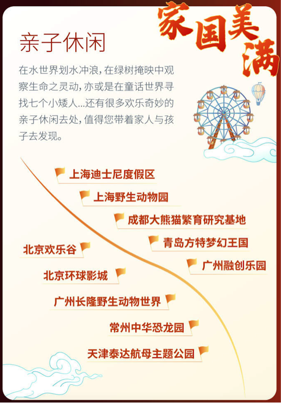 国庆长假,很多私家车主都是携亲友孩子一同出游,同时也顺路分享空座,亲子休闲游因此成为第一大顺风车旅游热门,其中又以主题乐园、野生动物园为主。从《预测报告》看,上海迪士尼度假区、上海野生动物园、成都大熊猫繁育研究基地、青岛方特梦幻王国、北京环球影城、北京欢乐谷、广州长隆野生动物世界、广州融创乐园、常州中华恐龙园、天津泰达航母主题公园今年将更热门。值得一提的是,从当前门票预售情况,及嘀嗒顺风车近期数据来看,北京环球影城将成为今年国庆期间的一大顺风出游热点。