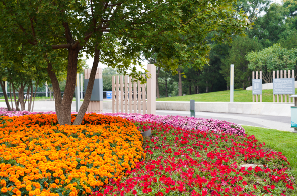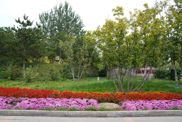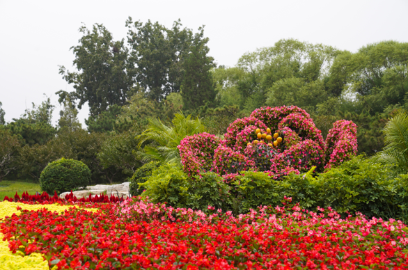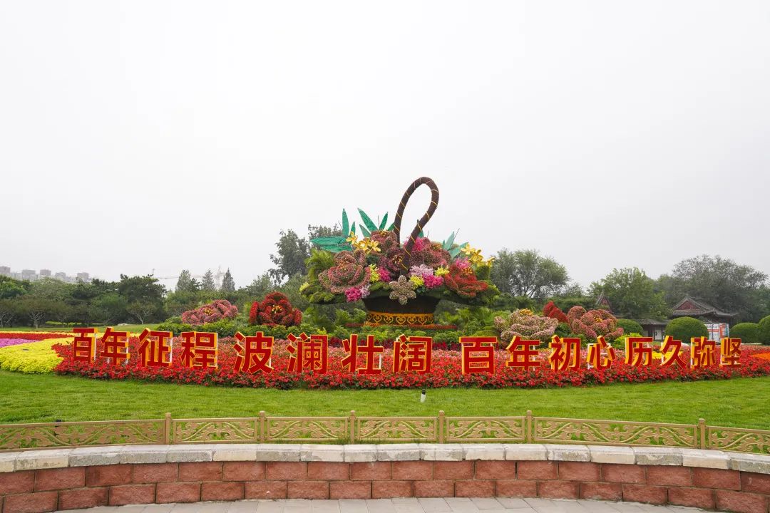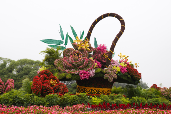 △五环八角桥广场主题立体花坛鲜艳亮丽