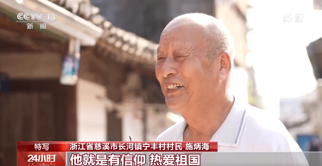浙江省慈溪市长河镇宁丰村村民 施炳海:他就是有信仰,热爱祖国,对五星红旗的热爱。
