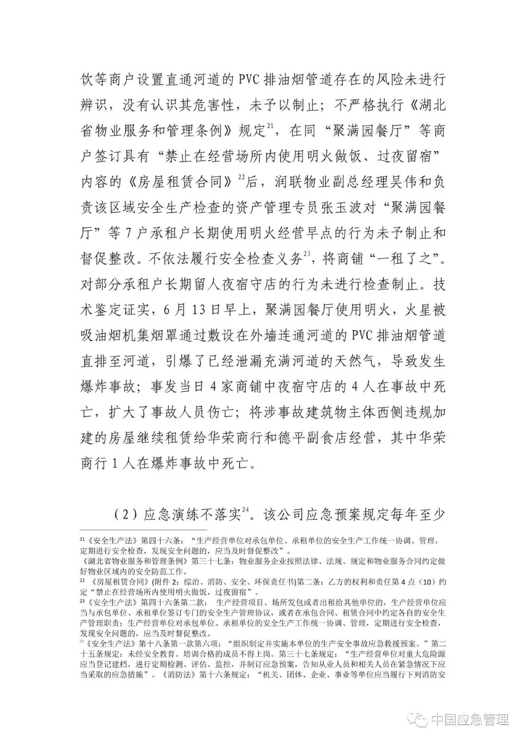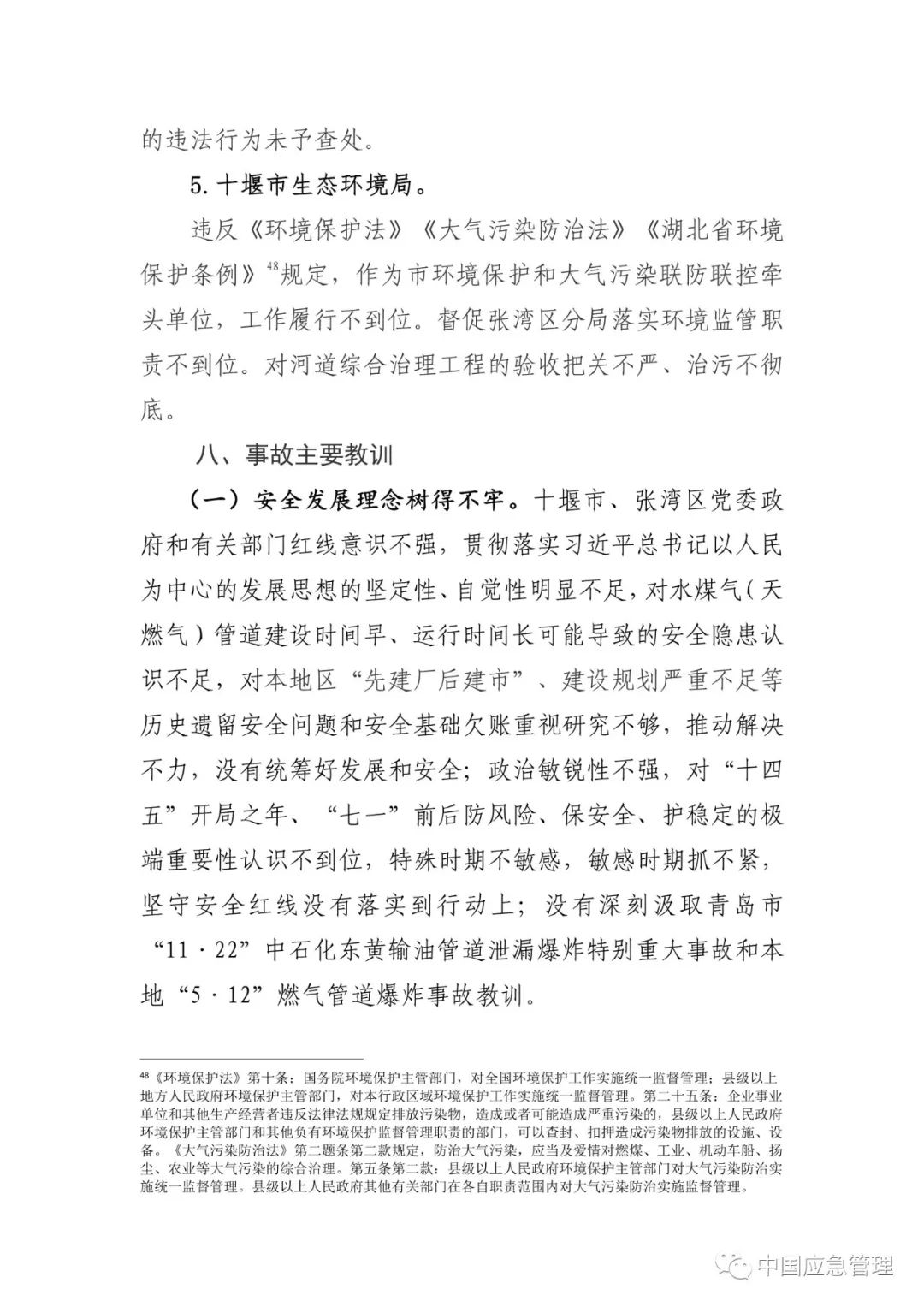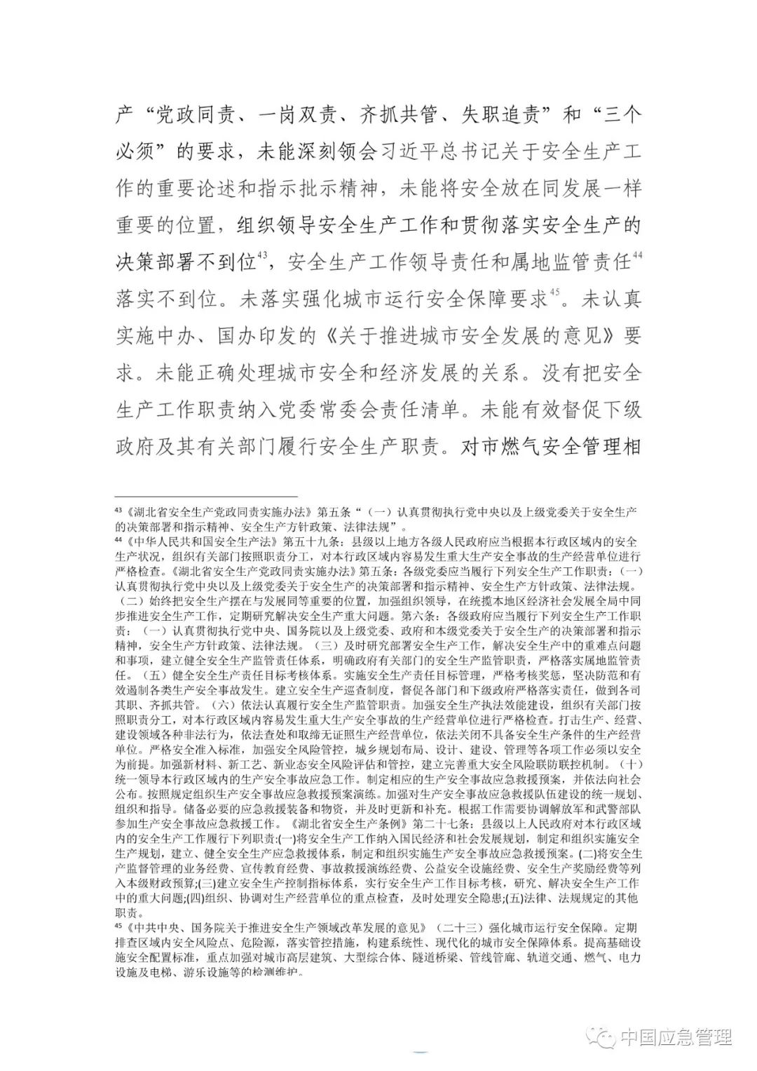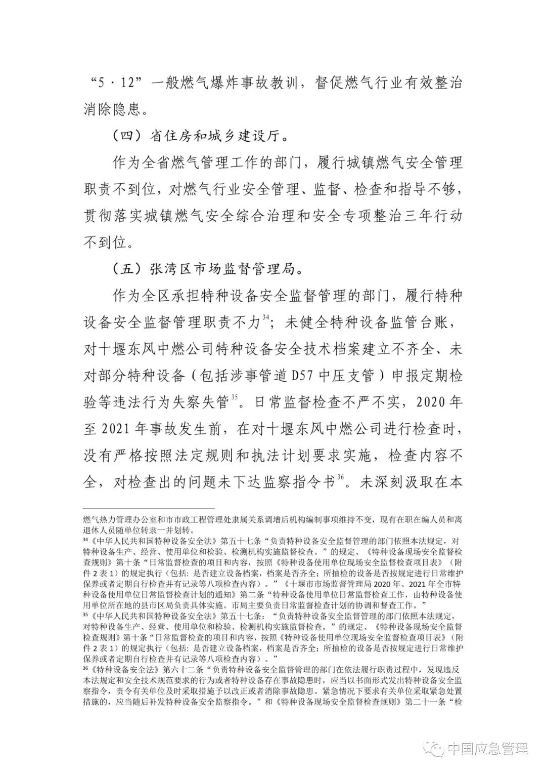 调查报告显示,涉事故建筑物由东风汽车房地产有限公司向润联物业划转时,未提示或告知下方有燃气管道穿过,其中现在负责运营维护事故管道的十堰东风中燃公司,从未对事故管道进行巡查,事发后巡线员为逃避责任追究,伪造补登了巡线记录。