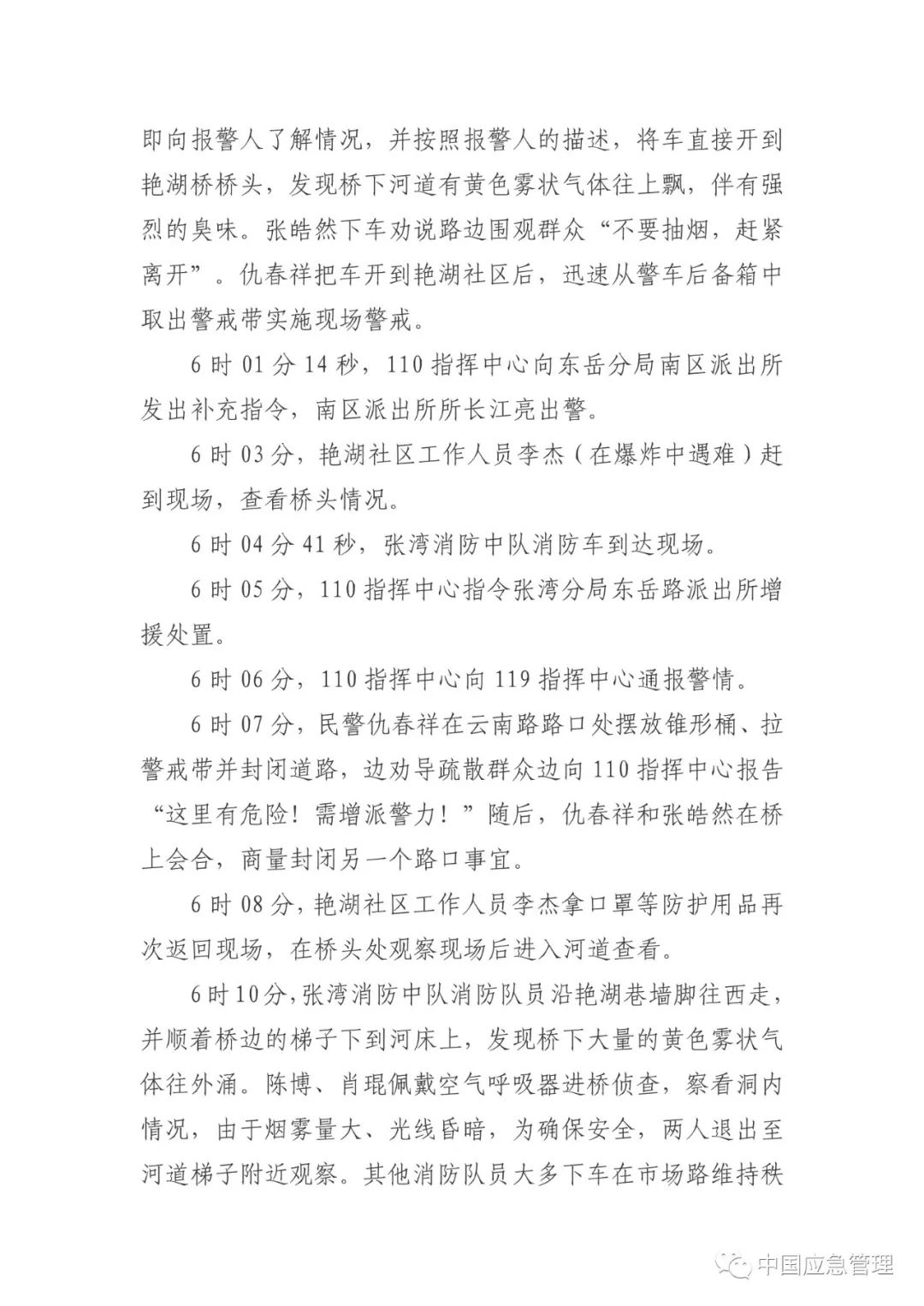 事发前1小时十堰市110指挥中心已接到管道泄漏报警电话,并派出民警到现场处置,燃气公司也派出抢修人员到现场处置。抢修8分钟后,抢修人员告知公安、消防人员处置结束、可以撤离,民警与消防在现场继续观察警戒和做好安监护,4分钟后发生爆炸。