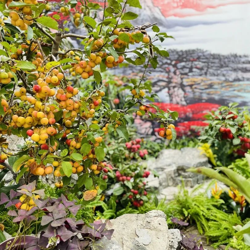 不同季节的花卉果实同时亮相,又是一副色彩斑斓的美景!这个假期,快和家人朋友一起来欣赏吧!