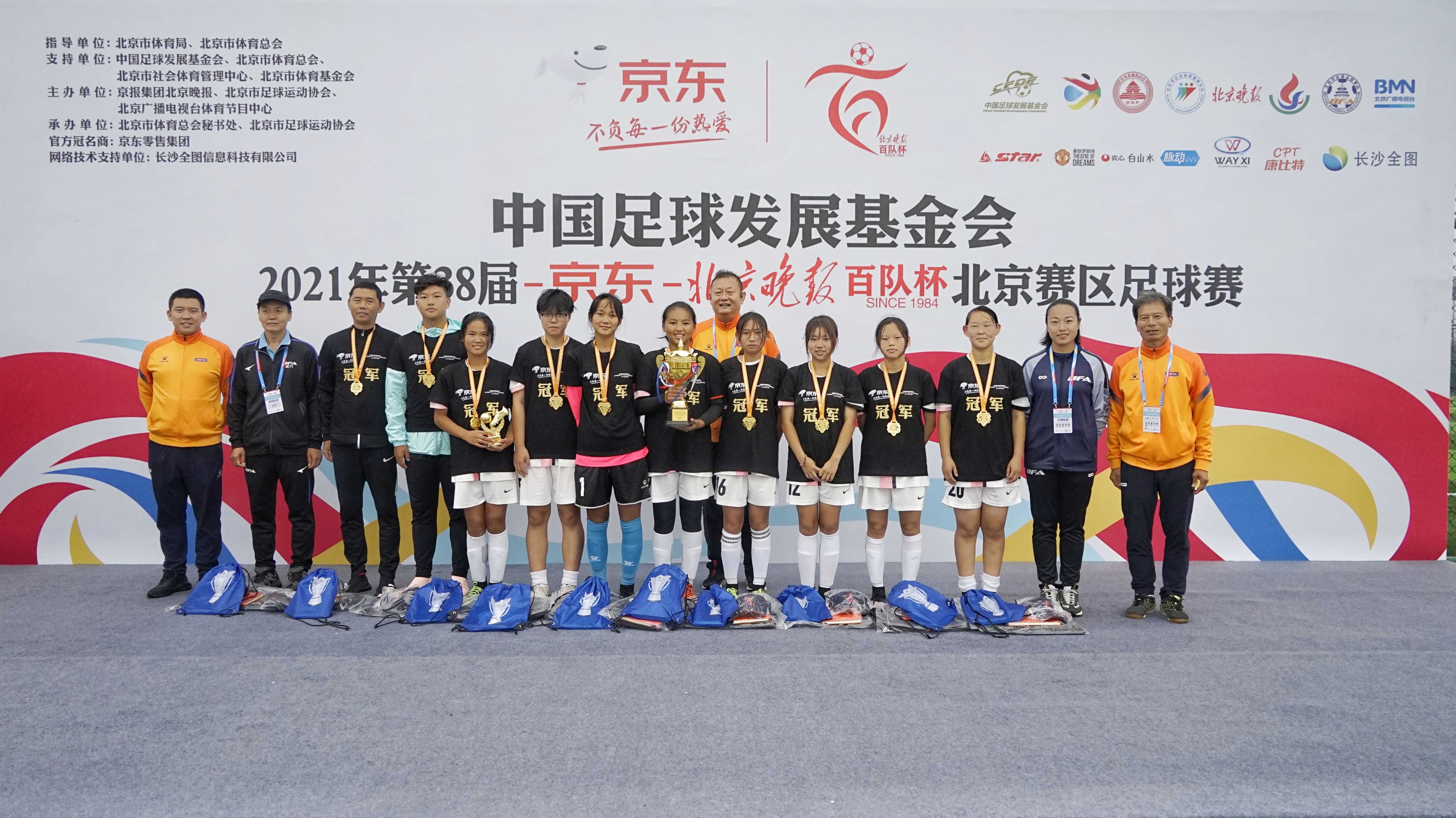 “冠军!冠军!”U17冠军女孩子们的呐喊声回荡在位于北京的回龙观街道回超大球场。10月3日下午,中国足球发展基金会2021年第38届-京东-北京晚报百队杯北京赛区足球赛八人制U17女足决赛,只有北京市电气工程学校女足一支球队报名参赛,不用比赛冠军也属于她们,但她们并不孤单,组委会专门给她们安排和U15两支报名的女足球队切磋,让她们心满意足,雨水浇灌下的这座冠军奖杯弥足珍贵。其实,女孩子们的足球世界同样色彩斑斓。