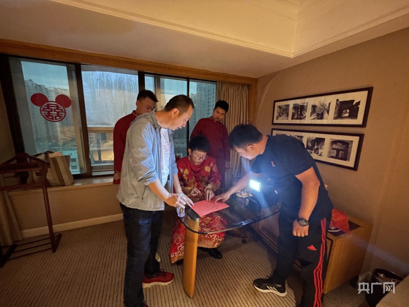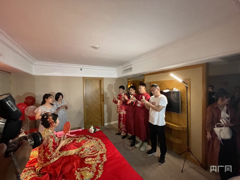 参加“接亲”环节的每一位宾客都被小夫妻的欢乐深深感染(总台央广记者 韩雪莹 摄)