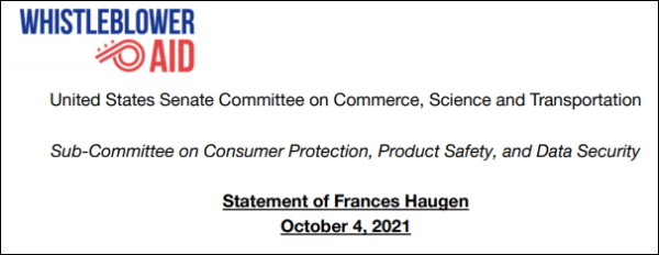 当地时间10月5日,脸书前雇员弗朗西丝・豪根(Frances Haugen),当天在参加美国国会参议院商务委员会下属消费者保护小组委员会的听证会时,请求国会对脸书采取行动,她指责脸书为追求“天文数字的利润”而故意将用户之于危险之中。