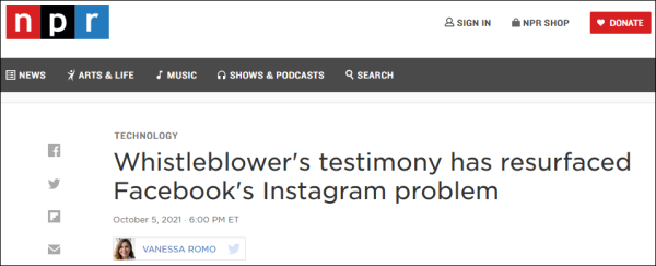 据美国全国公共广播电台(NPR)5日报道,在已经公布的一些文件中,有研究表明,脸书旗下的Instagram对年轻用户的心理健康产生了负面影响,尤其是年轻女孩。豪根透露了一项脸书的研究调查结果,有13.5%的少女认为,Instagram加深了她们的“自杀念头”;17%的少女认为,Instagram导致了她们的“饮食失调”。