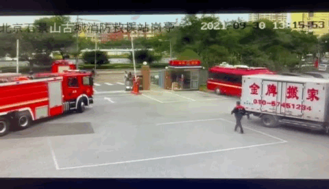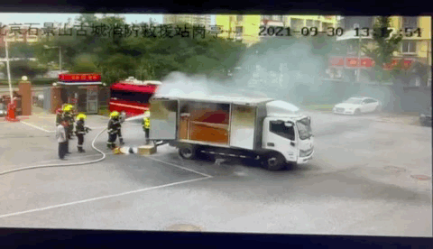 日前,石景山消防救援支队接到报警称,报警人在经过古城五金市场时,见到有一辆货车起火冒烟并告知货车司机在第二个红绿灯右转有消防站,货车司机立即把起火车辆开到了消防站。