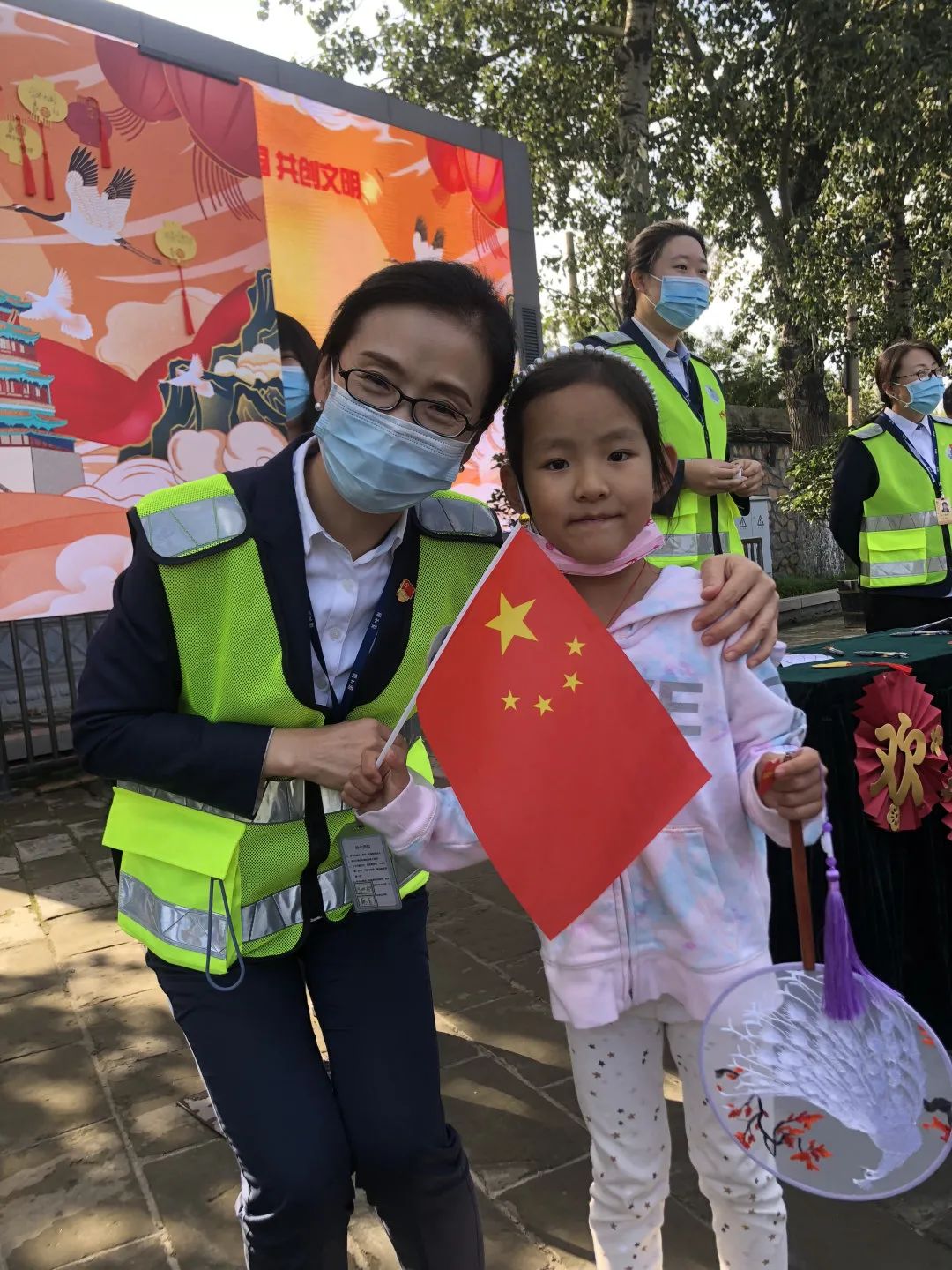 10月1日上午举行升旗仪式,组织职工及社区居民向国旗行注目礼,在园内开展文明游园宣传活动。